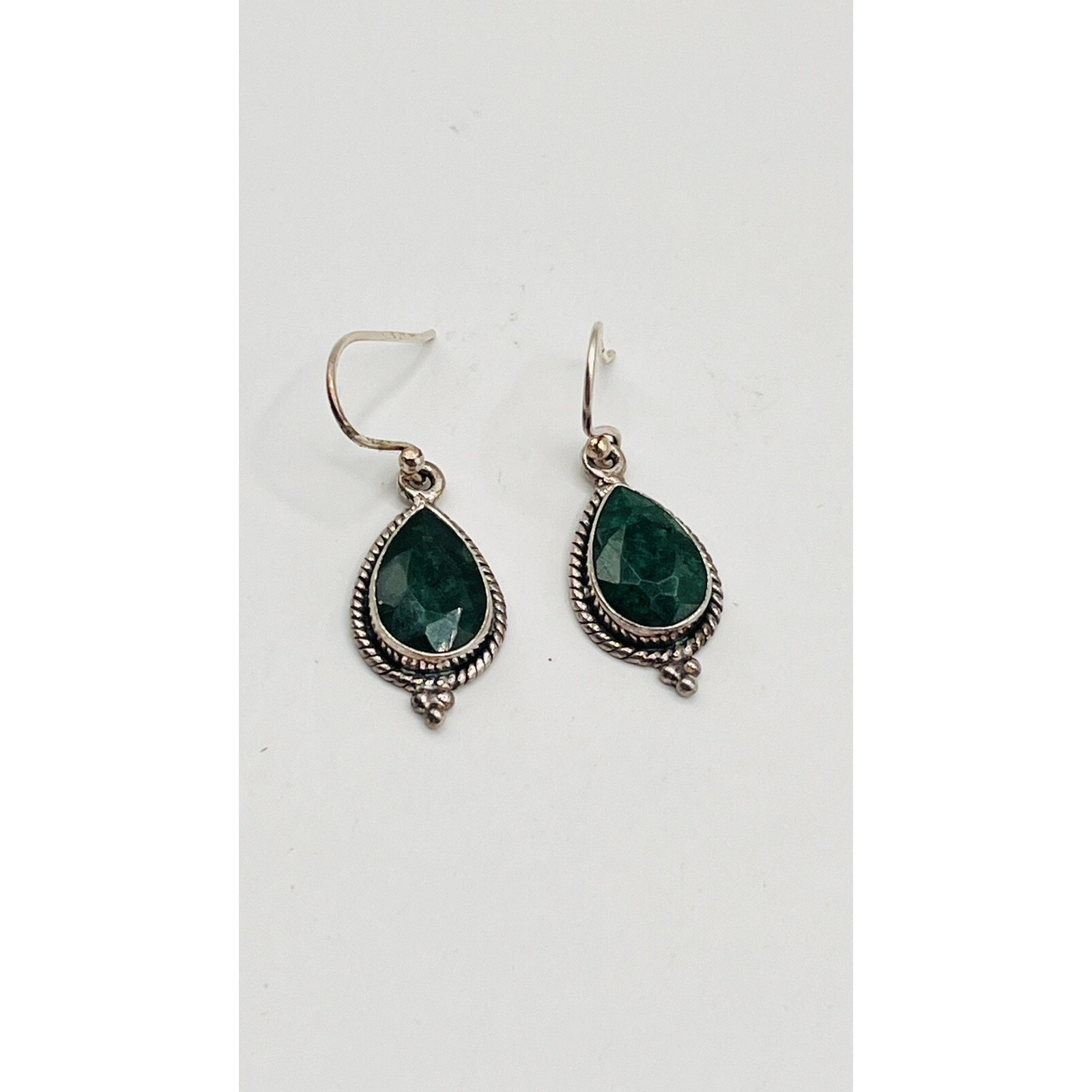 Green Emerald Gemstone Sterling Silver 925 Dangle Earrings Teardrop ShapeVintage