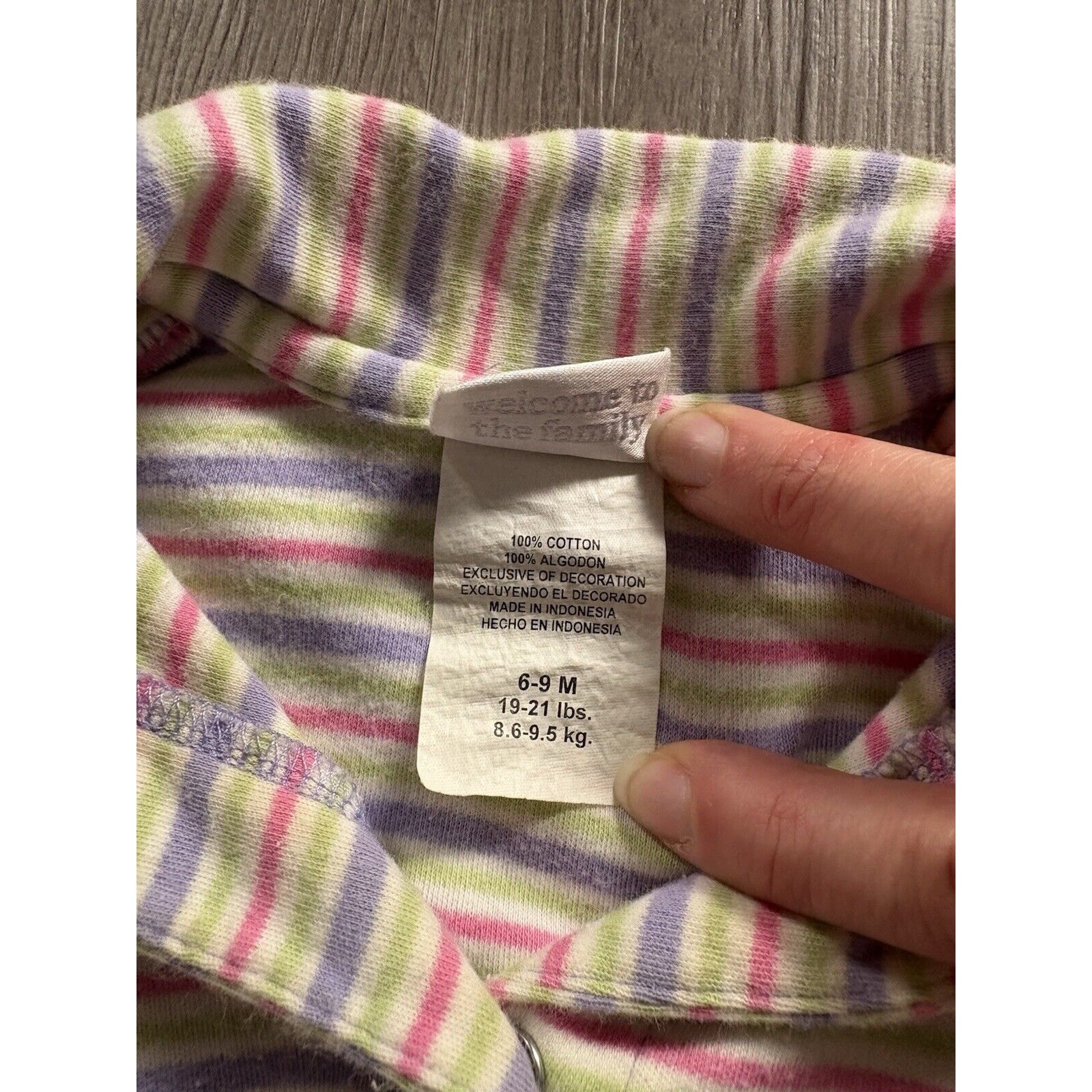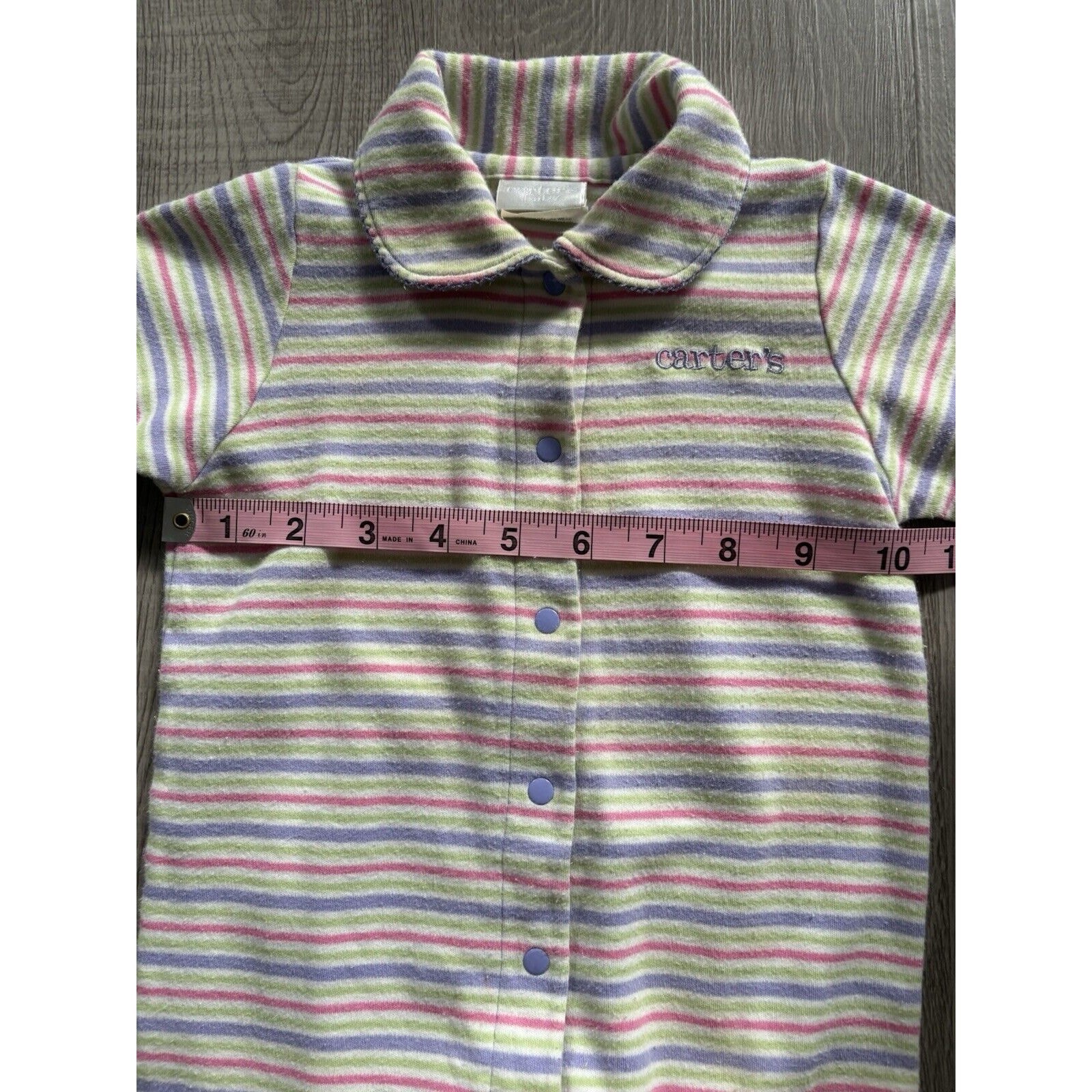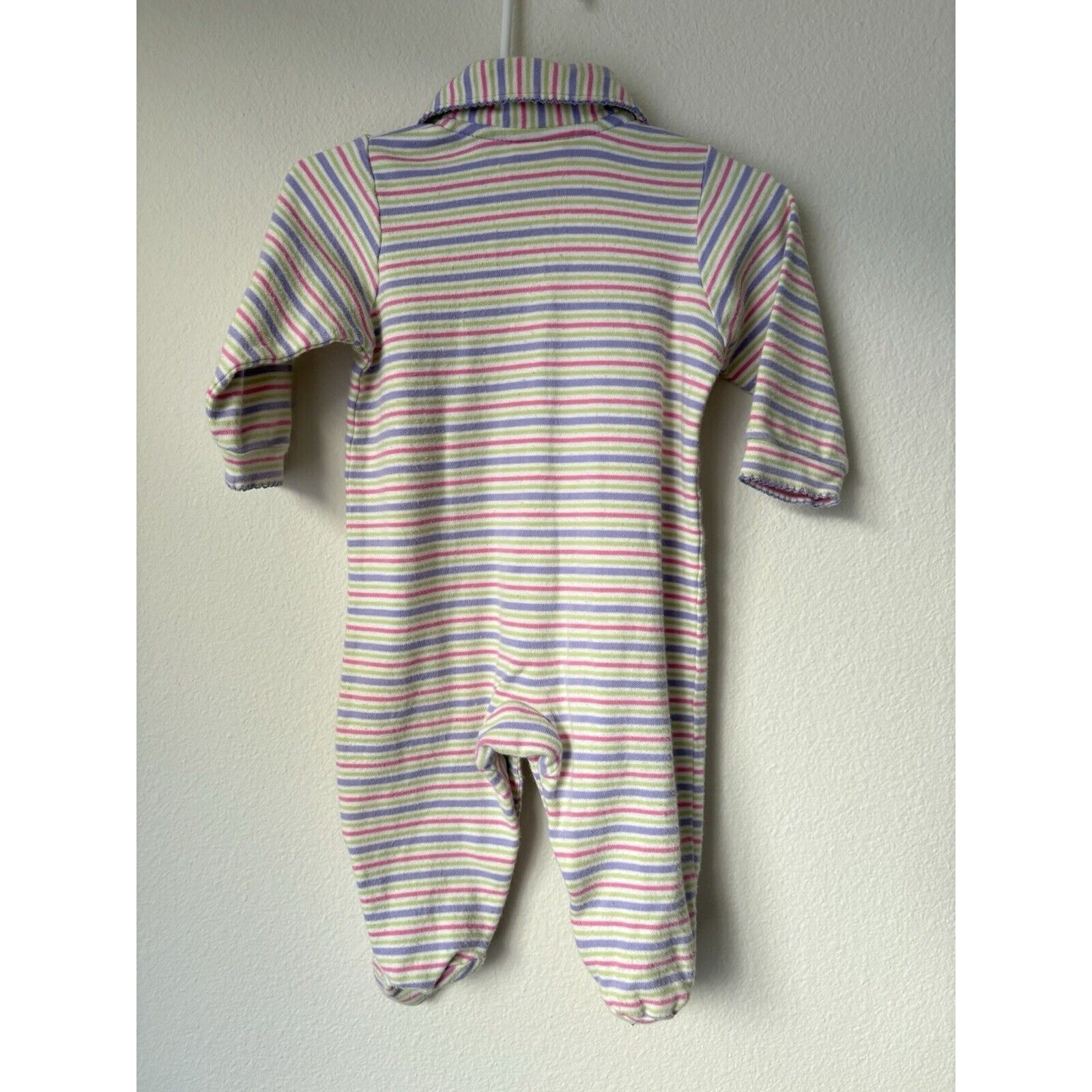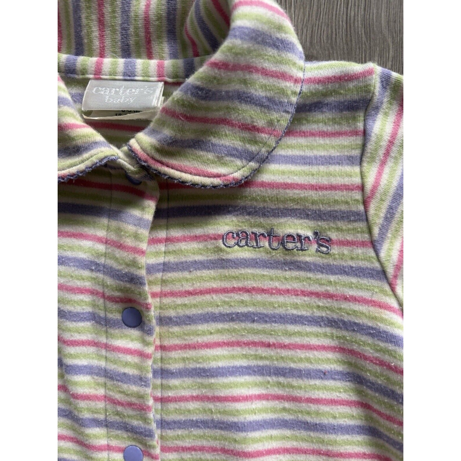 Vtg Carter's footed sleeper 6-9 Months stripe, embroidered, collar, green purple