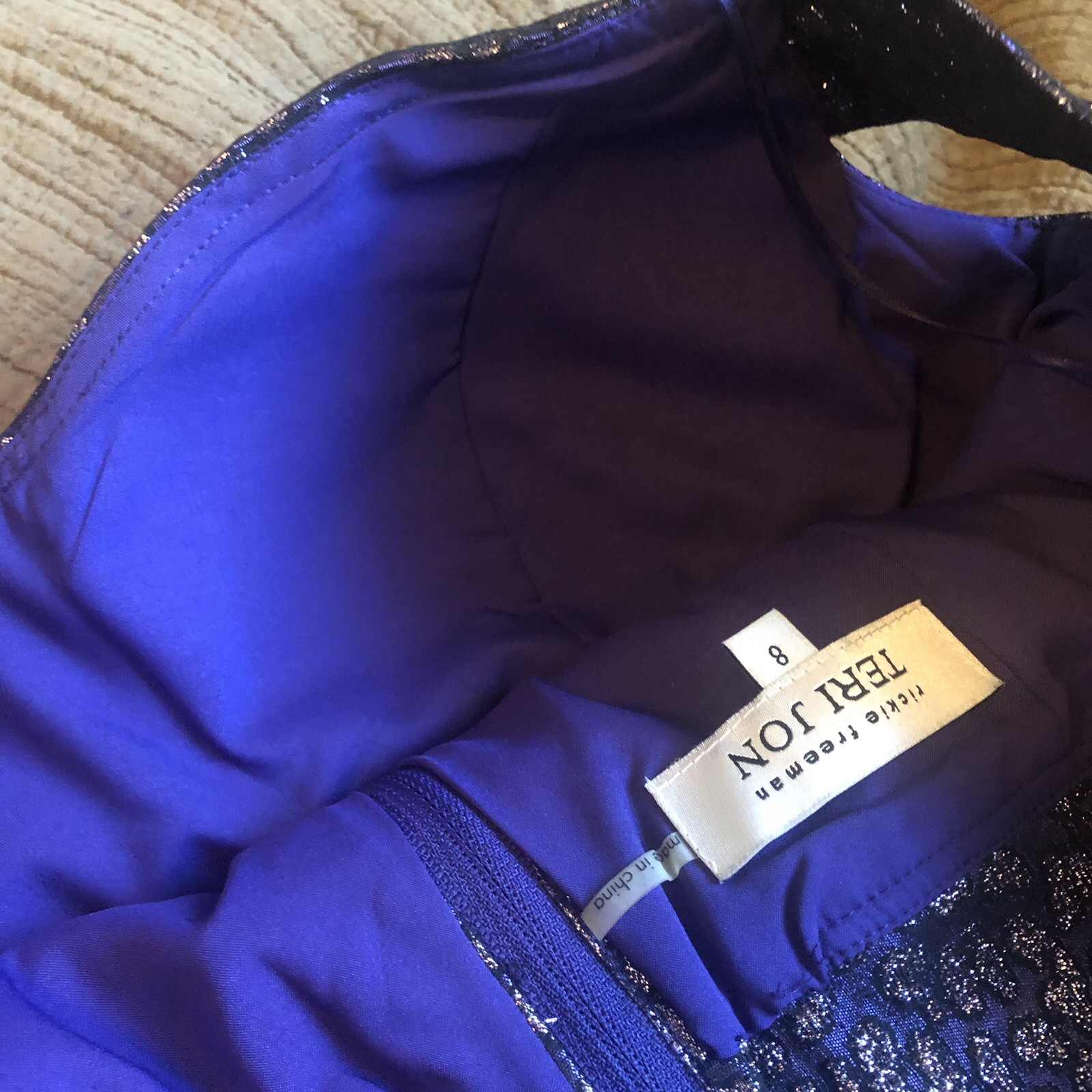 как выглядит NWT Rickie Freeman for Teri Jon OFF-SHOULDER Shimmer Cocktail Dress PUR/BLK 8 фото
