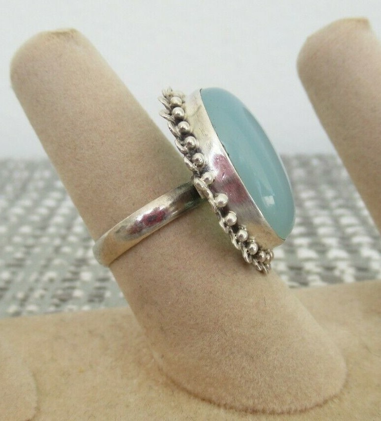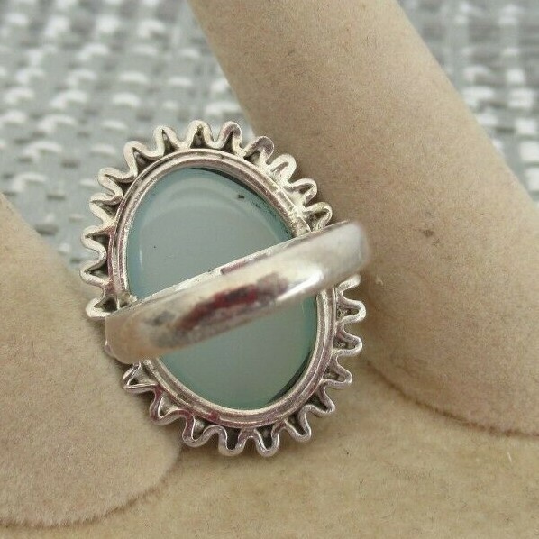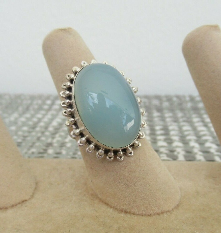 как выглядит 925 Silver 15mm Oval Chalcedony Cocktail Ring Sz 6 New фото