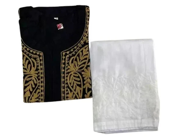 как выглядит Black Embroidered Kurti with White Pant Set Women s Chikankari Suit фото