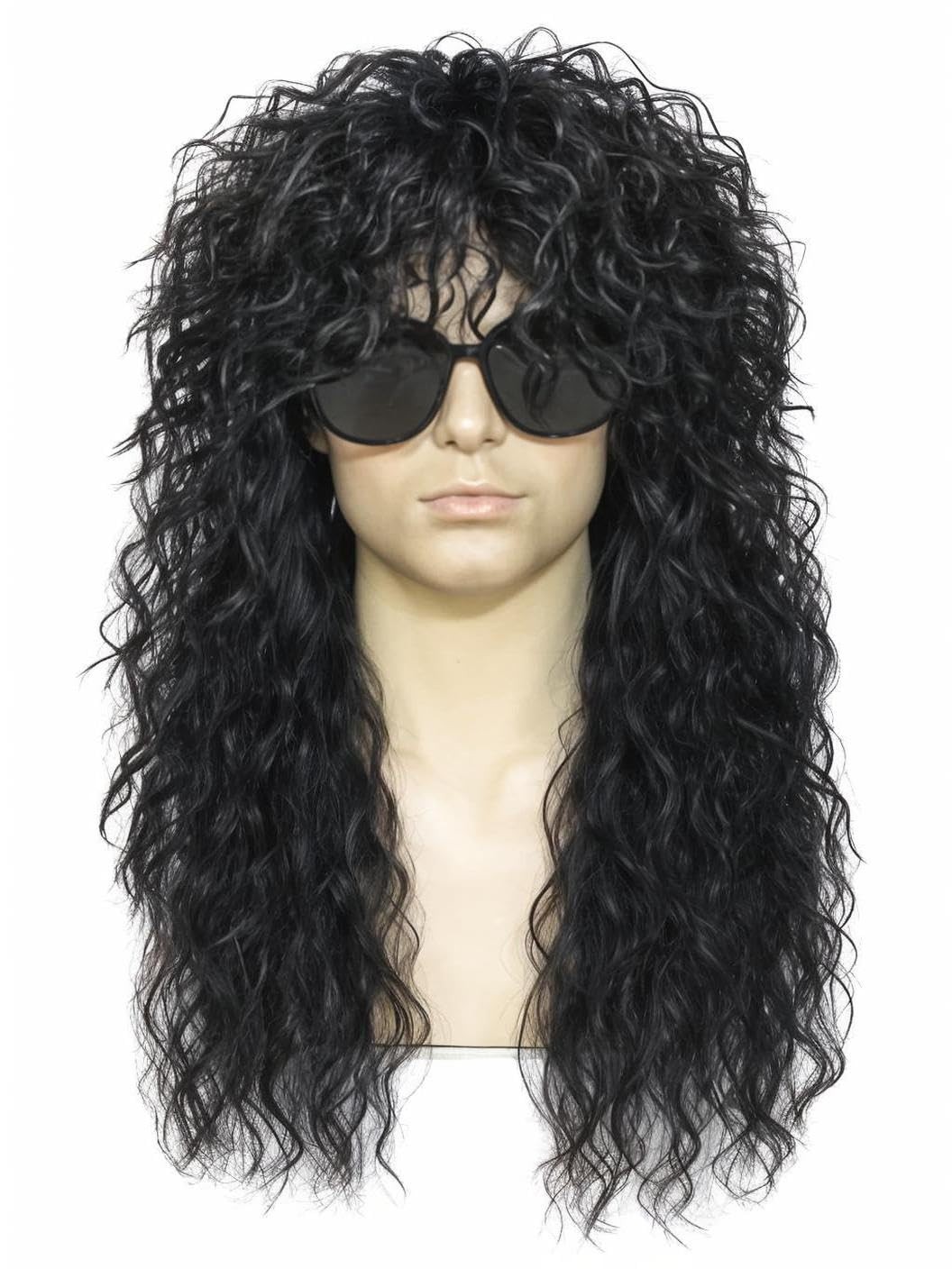 Rock Wig for 70s 80s Costume Men Women Curly Wavy Rocker Wig with Bangs