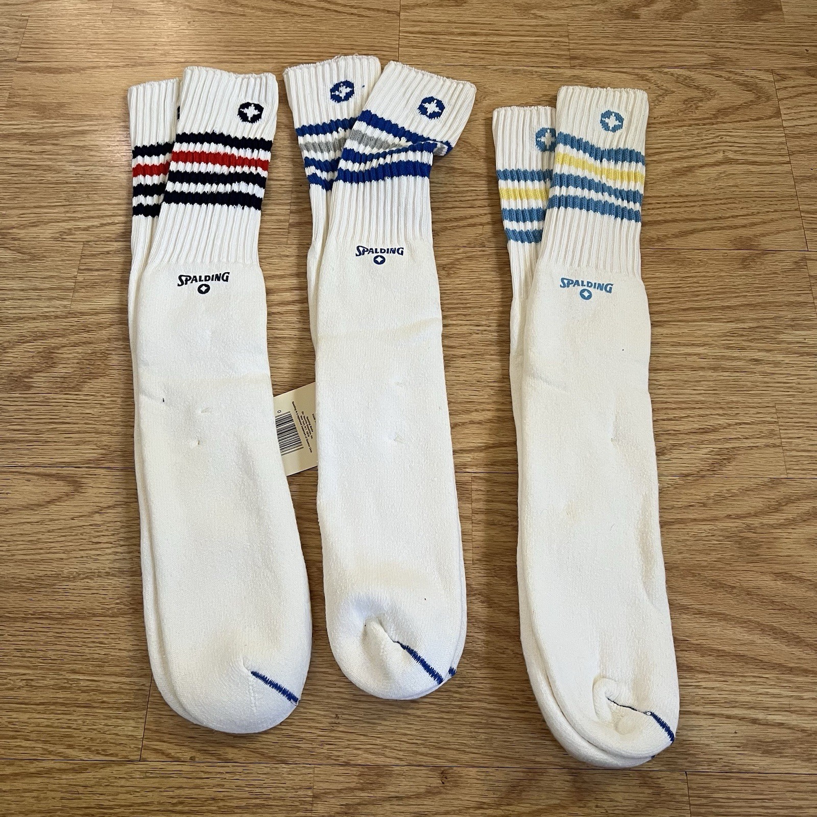 как выглядит NWT Vtg LOT 80s SPALDING Striped Tube Socks 10-13 Hi bulk Cotton Over Calf фото