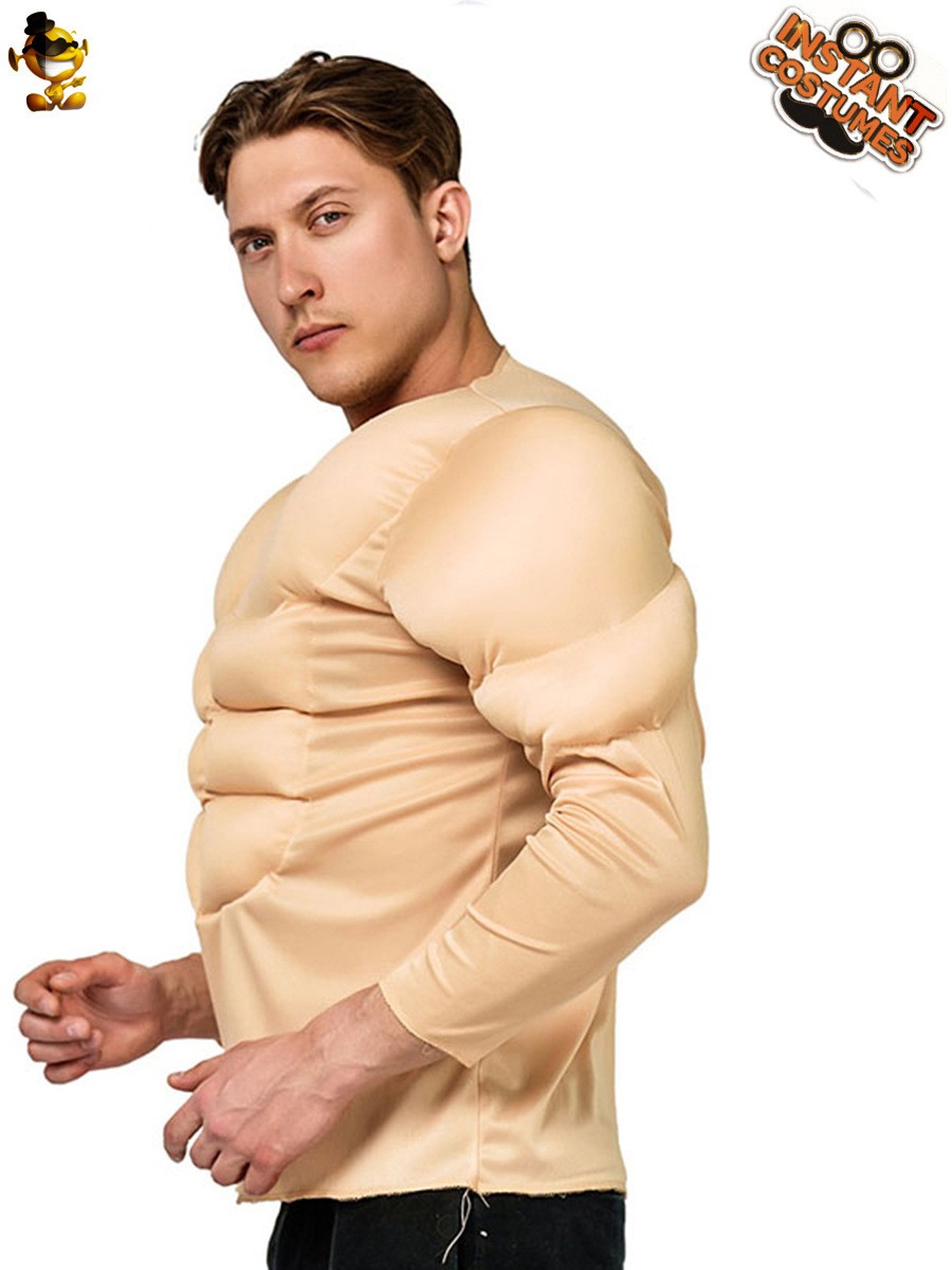Men's Muscle Costume Shirt Fake Six Pack Abs Halloween Cosplay Performance Top