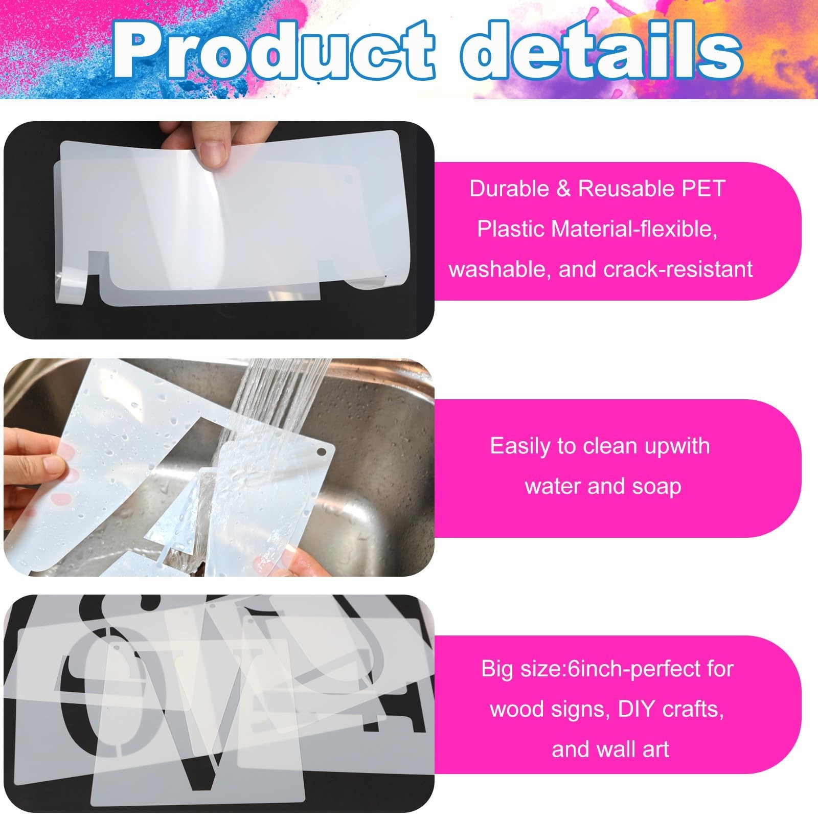 7 Inch Letter Stencils Numbers Kit - 36pcs Reusable Plastic Stencil Templat...