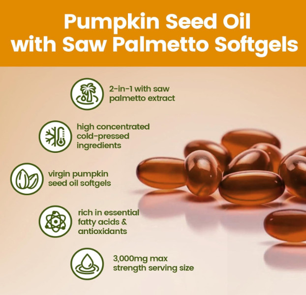 Pumpkin Seed Oil 1000mg with Saw Palmetto 300 Softgels Prostate Health