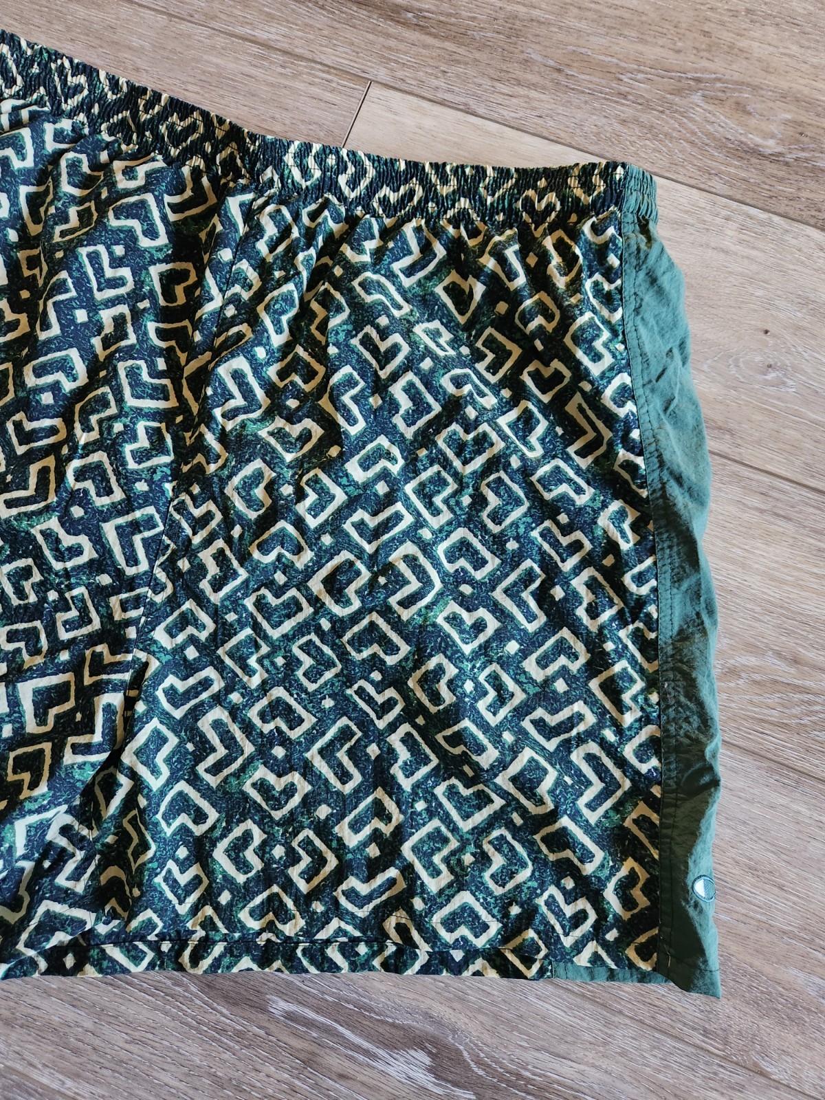 Vintage 90s Champion Green Geometric Swim Trunks Men s 2XL Bathing Suit Shorts