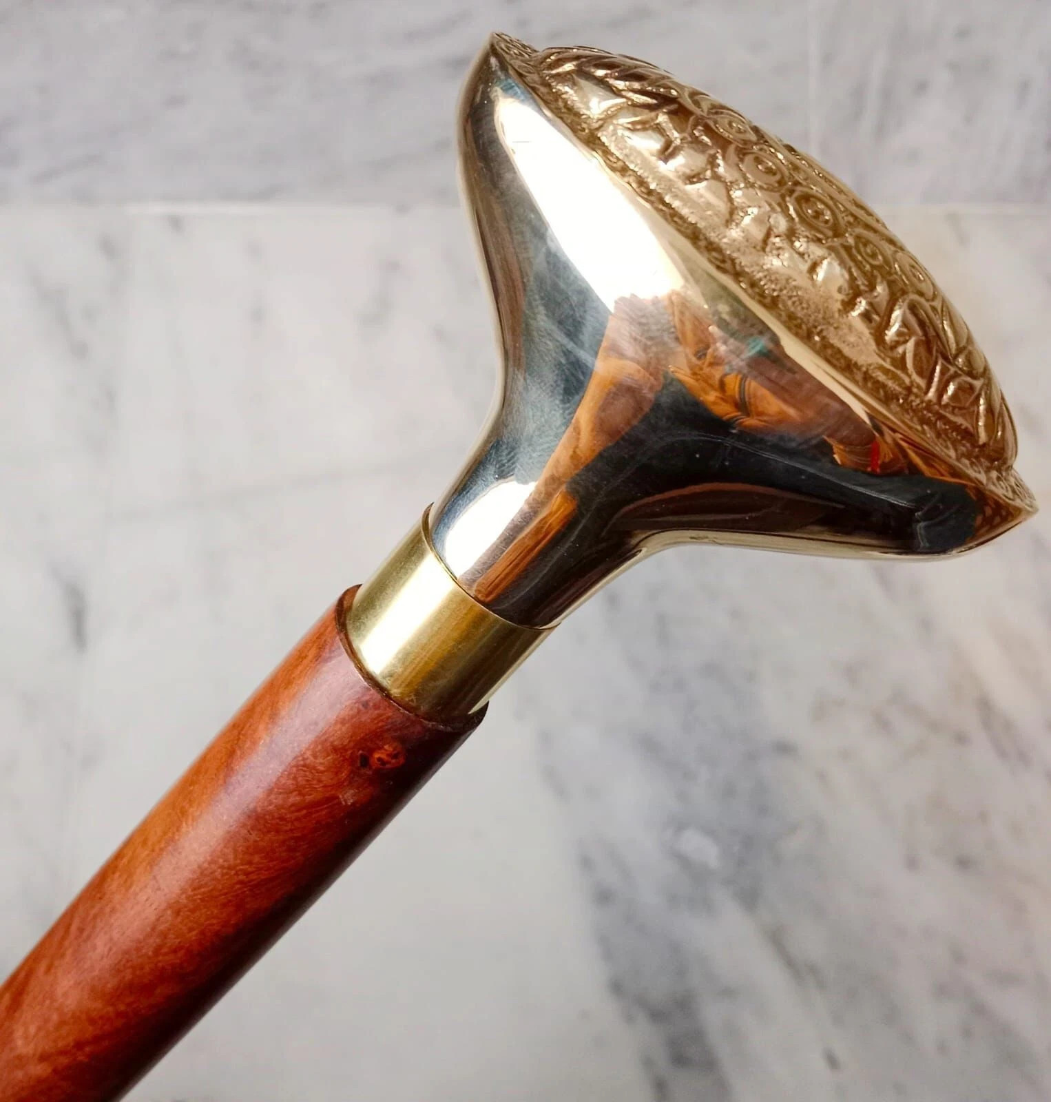 36'' Victorian Antique Brass Handle Wooden Vintage Designer Walking Stick Cane