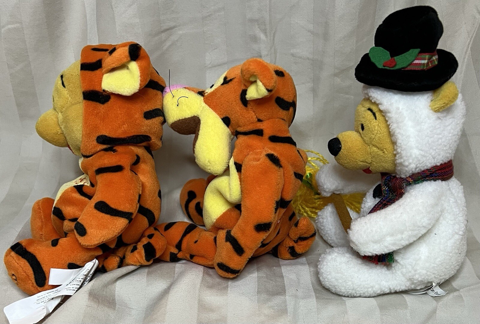 Walt Disney 8in Bean Bag Pooh Stuffies Pooh As Snowman, Pooh as Tigger, Tigger