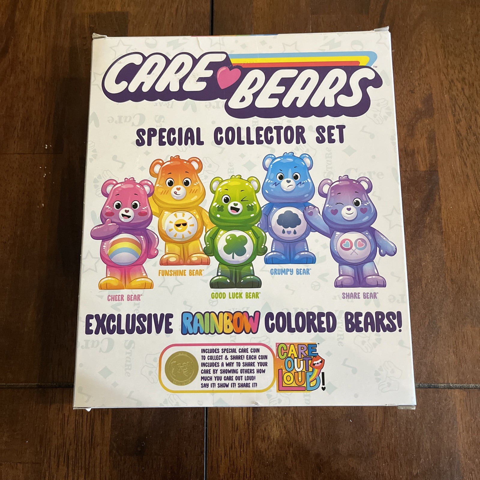 New Care Bears Exclusive Rainbow Shine Colored Special Collector 5 Pc Set NIB