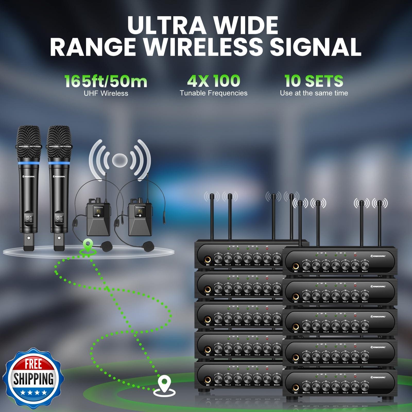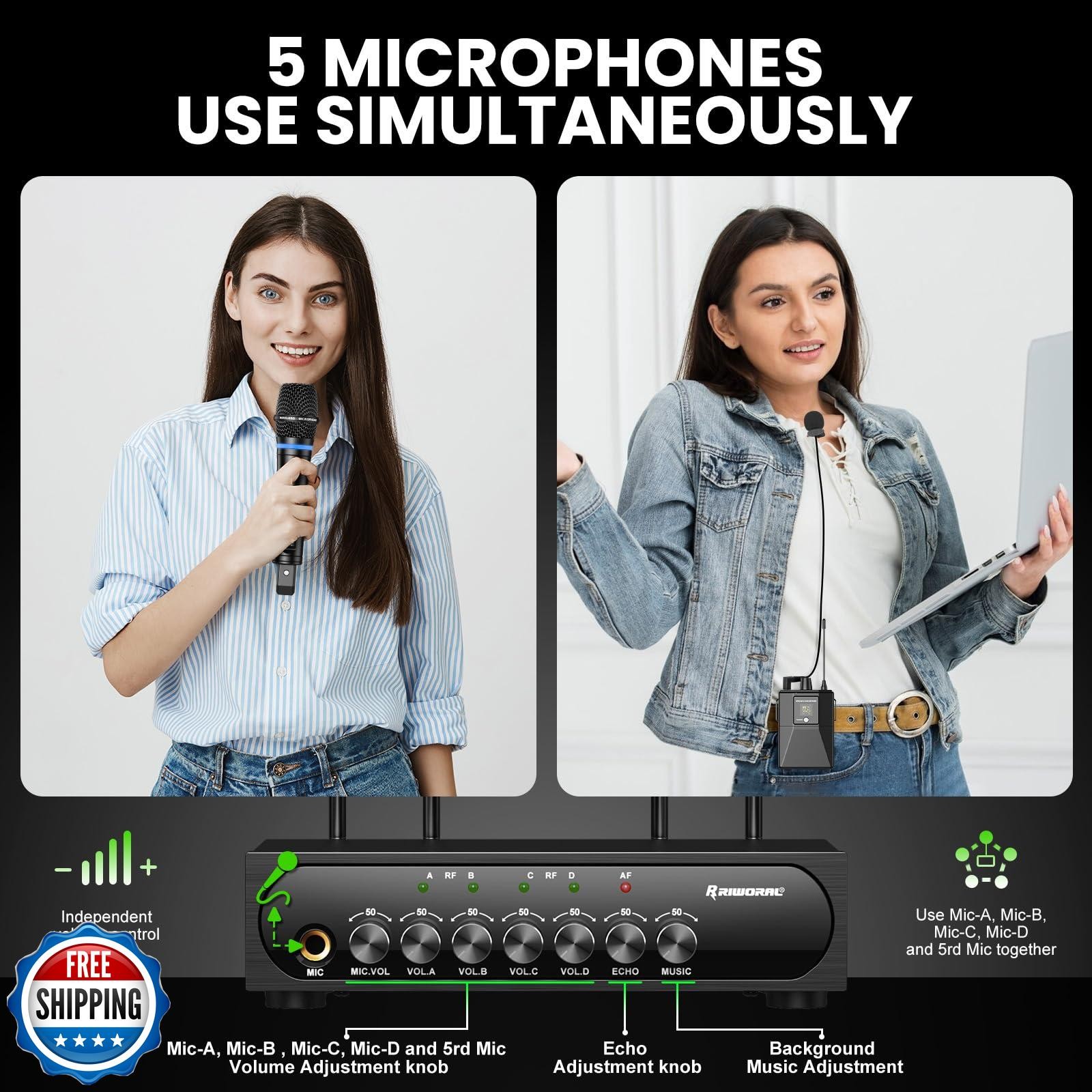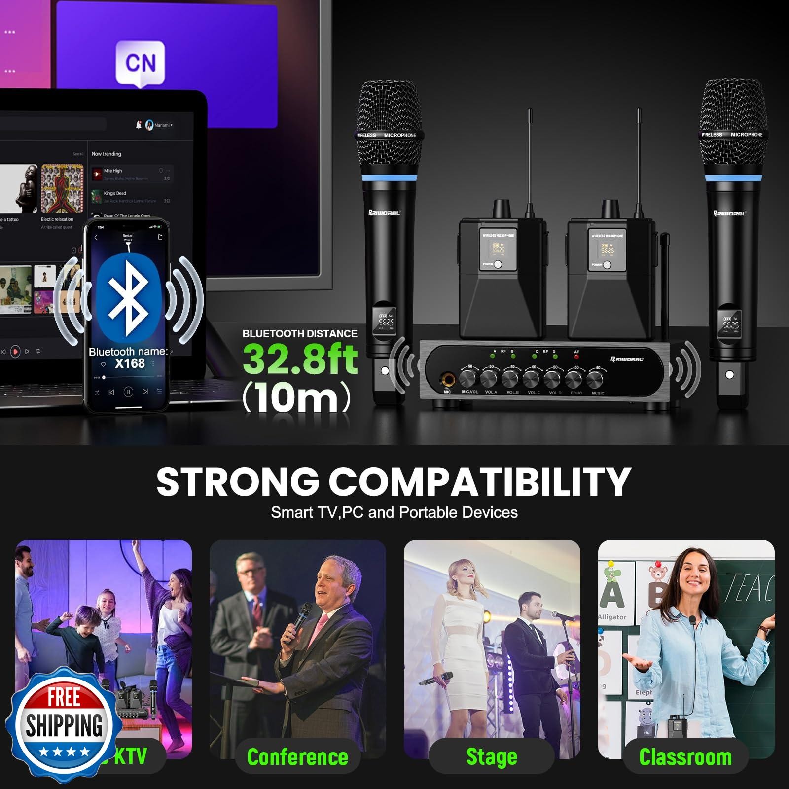 Wireless Microphone System 4 Channel UHF Wireless Mic Set with Handheld/Bodyp