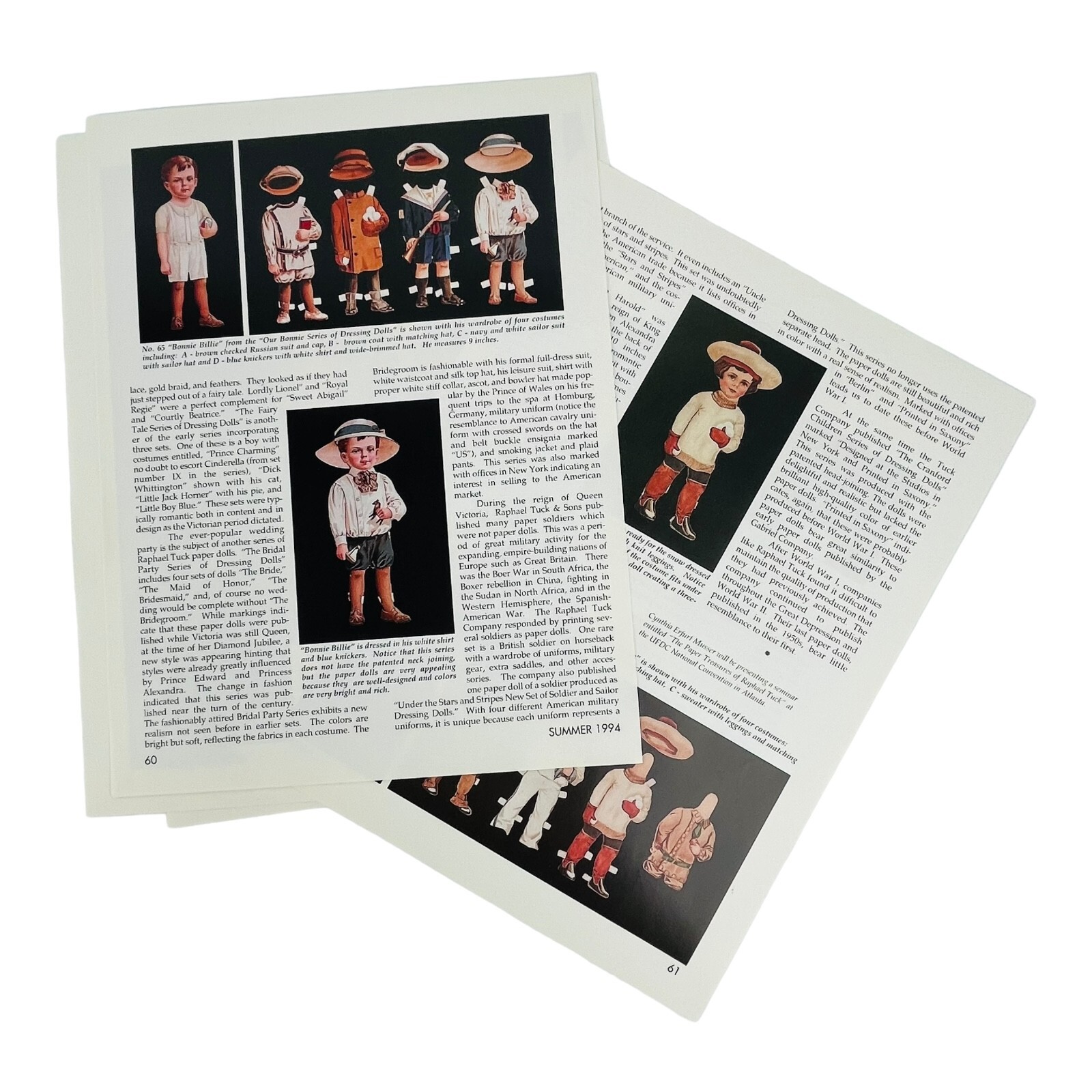 Vintage Raphael Tuck Paper Dolls History Article 6 Pages with Photos