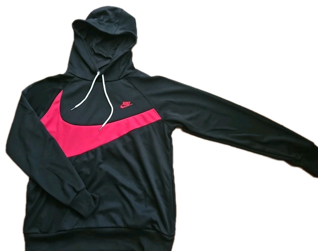 New Nike Swoosh Joggers Pullover Hoodie 2 Piece Set Men's Black/Red 2XL.