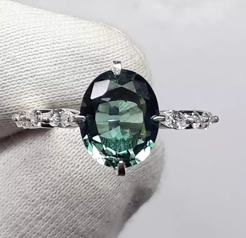 Teal Sapphire Women Ring Anniversary Birthday valentine day Gift For Her