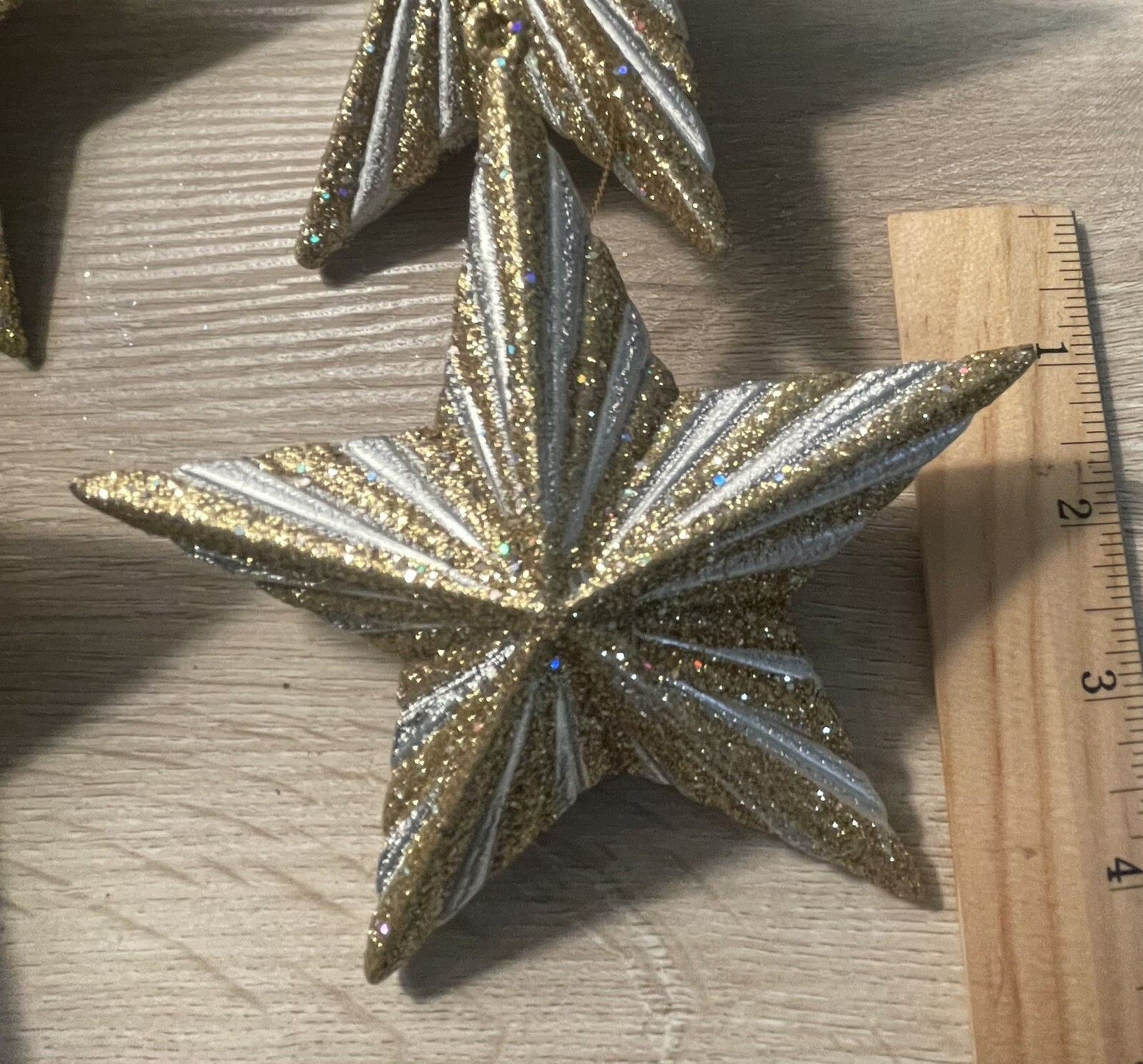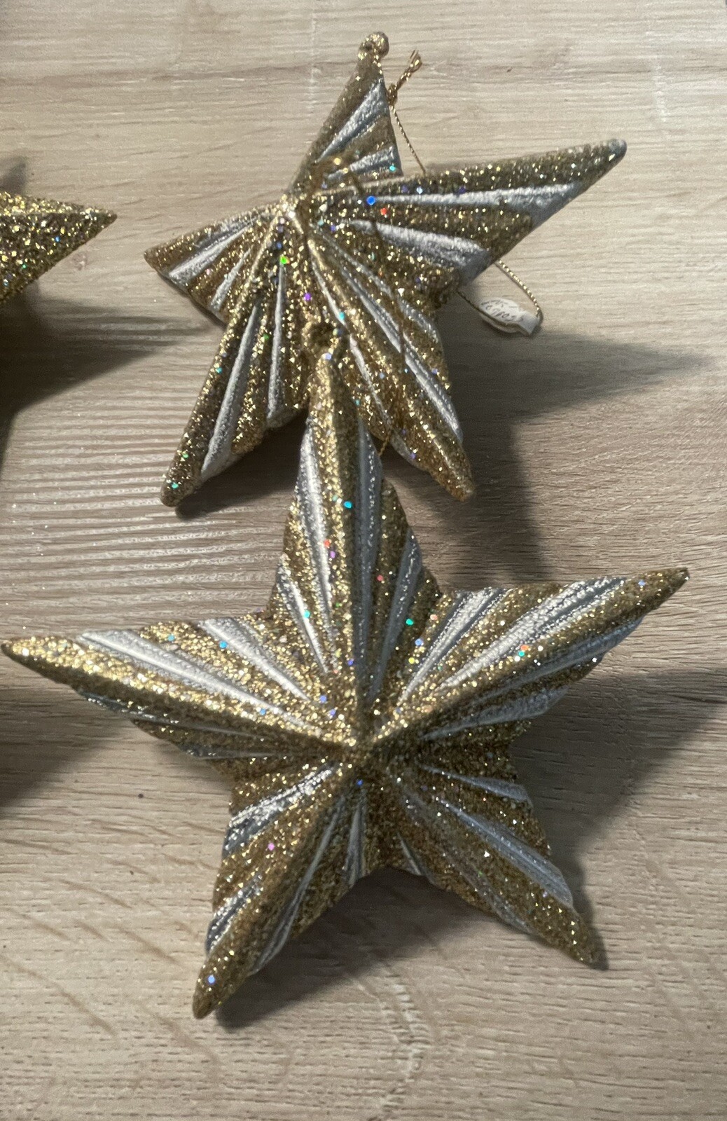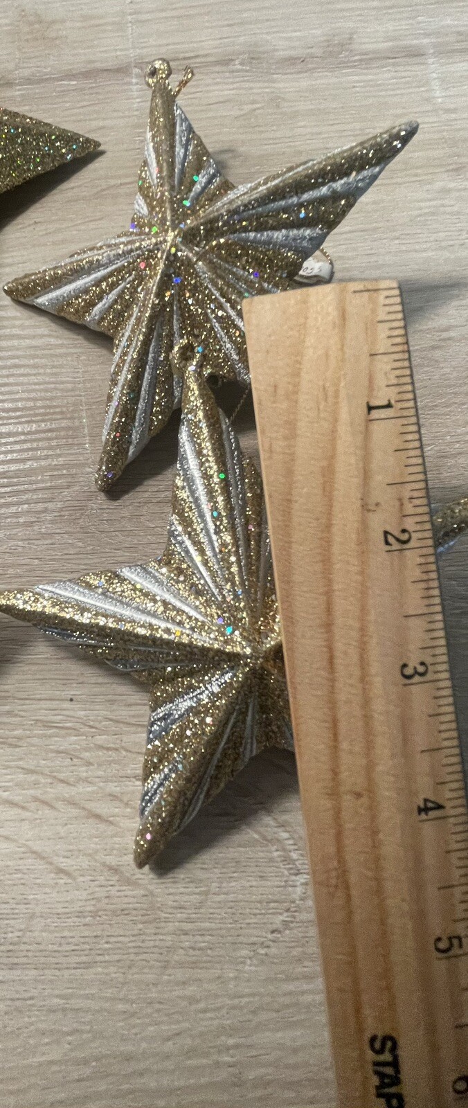 • Set Of 4 Gold Glitter Star ornaments- 2 Gold-2 Gold White