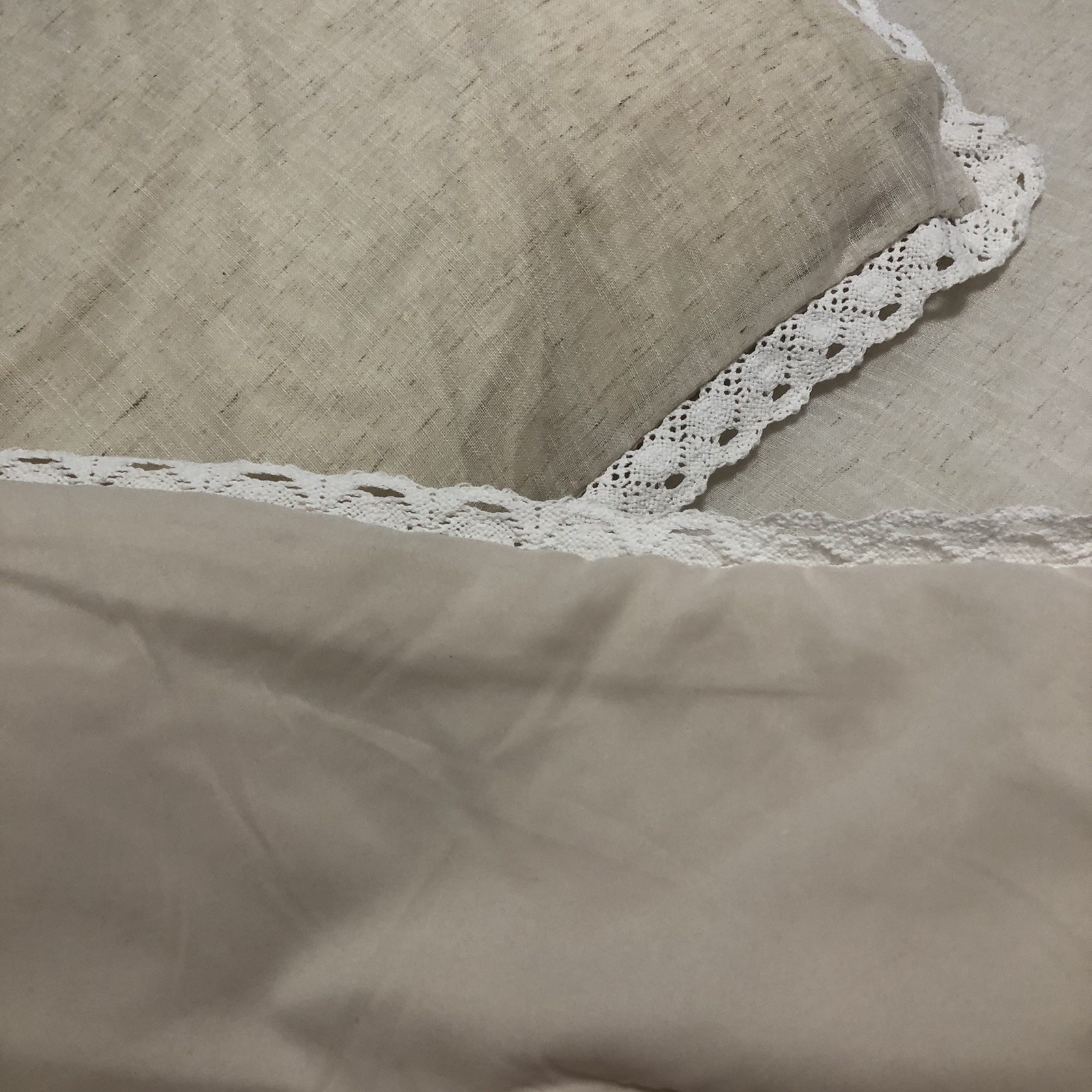 как выглядит Full/Queen Comforter Set Linen/Polyester with Crochet Trim Natural Linen Color фото