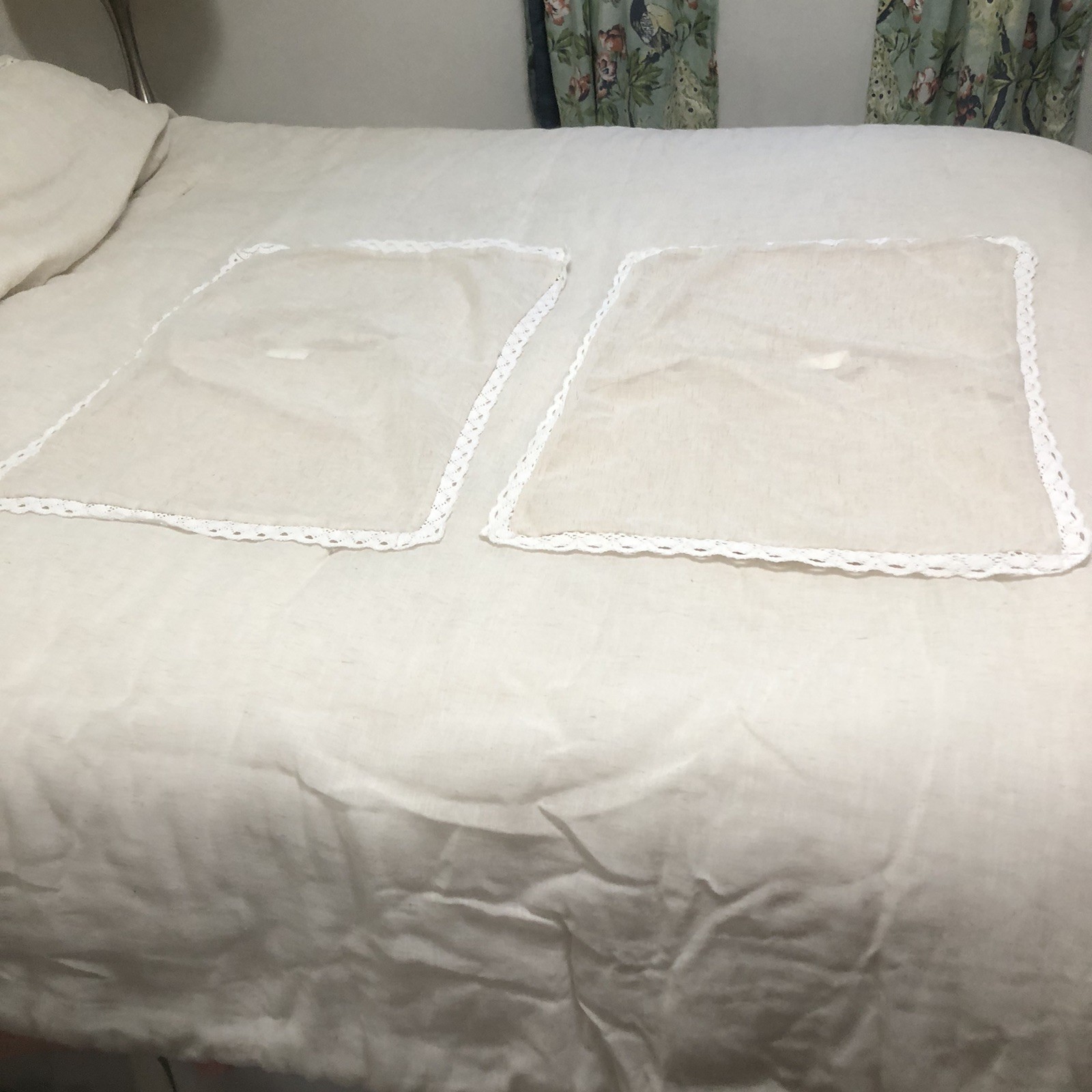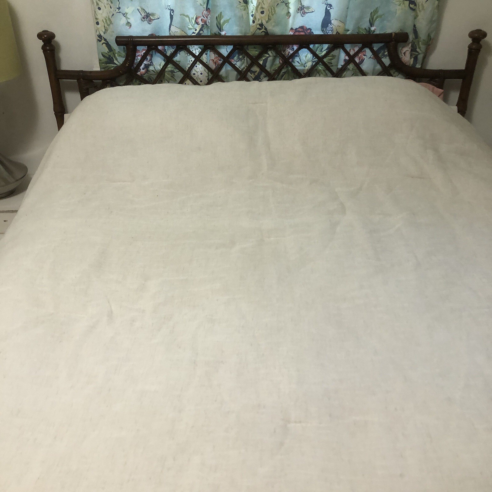 Full/Queen Comforter Set Linen/Polyester with Crochet Trim Natural Linen Color