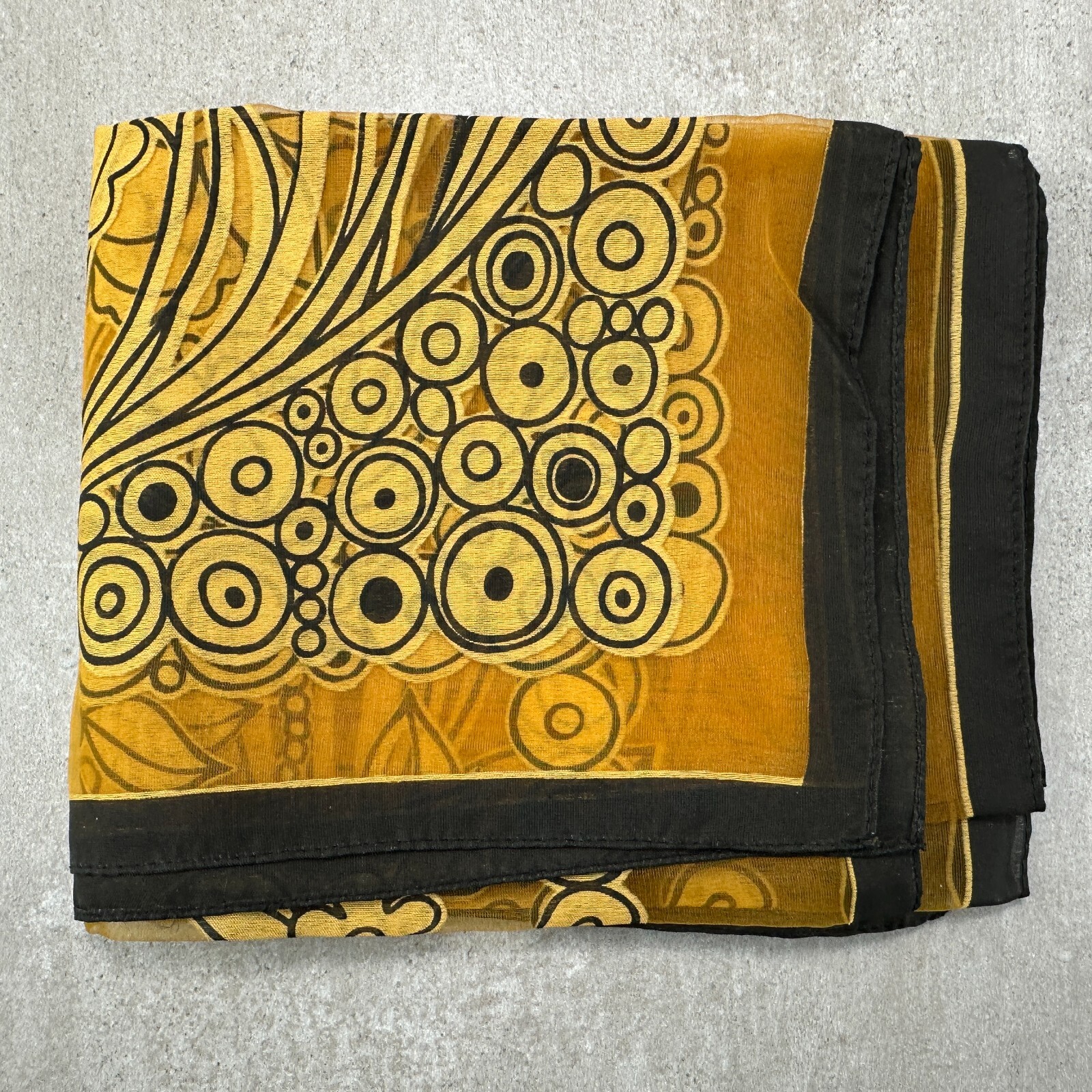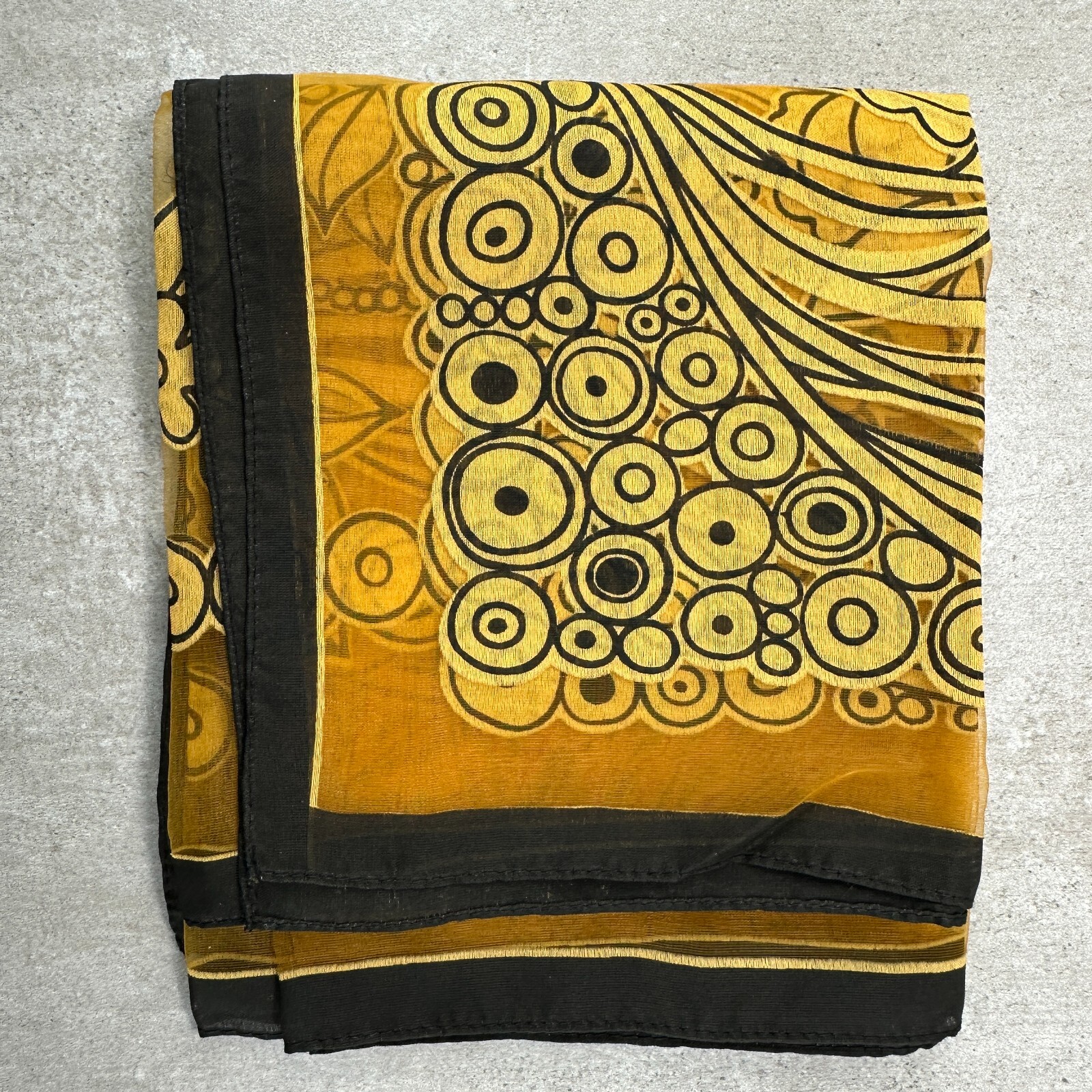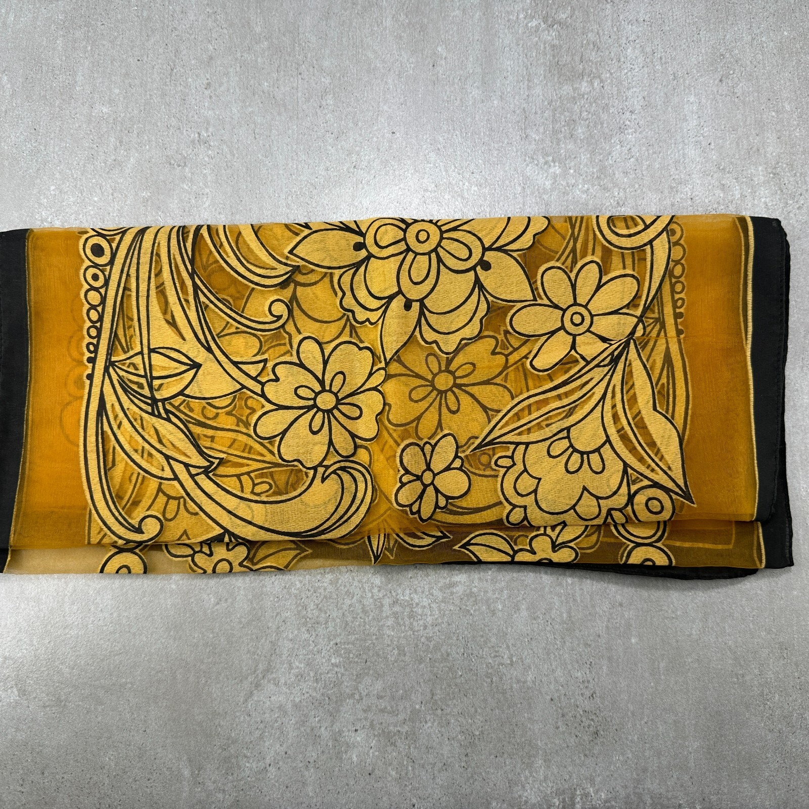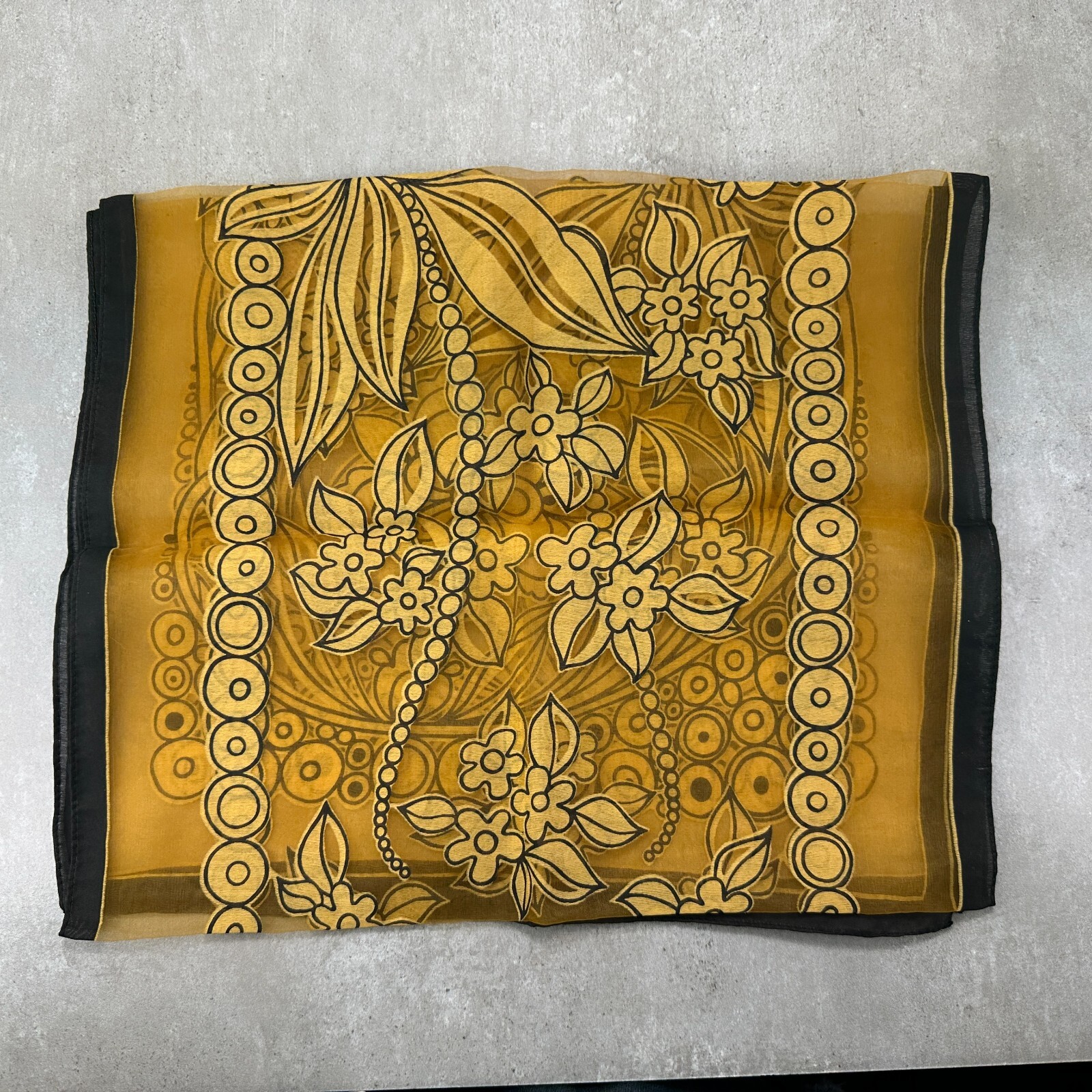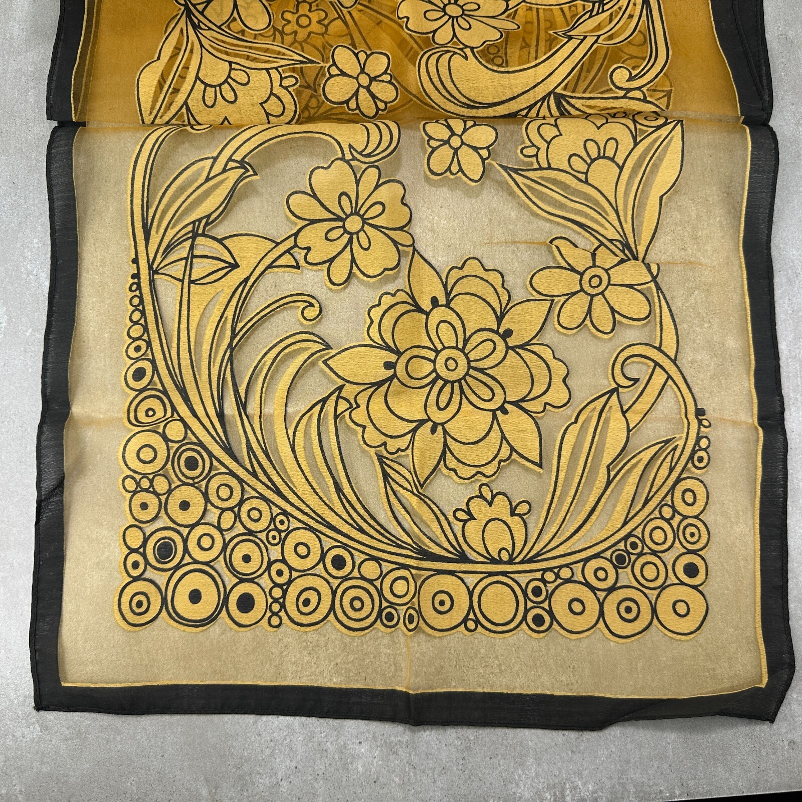 Vintage Sheer Flower Scarf Japan Gold Black 100 Rayon Bold Floral 44 Lot Beige