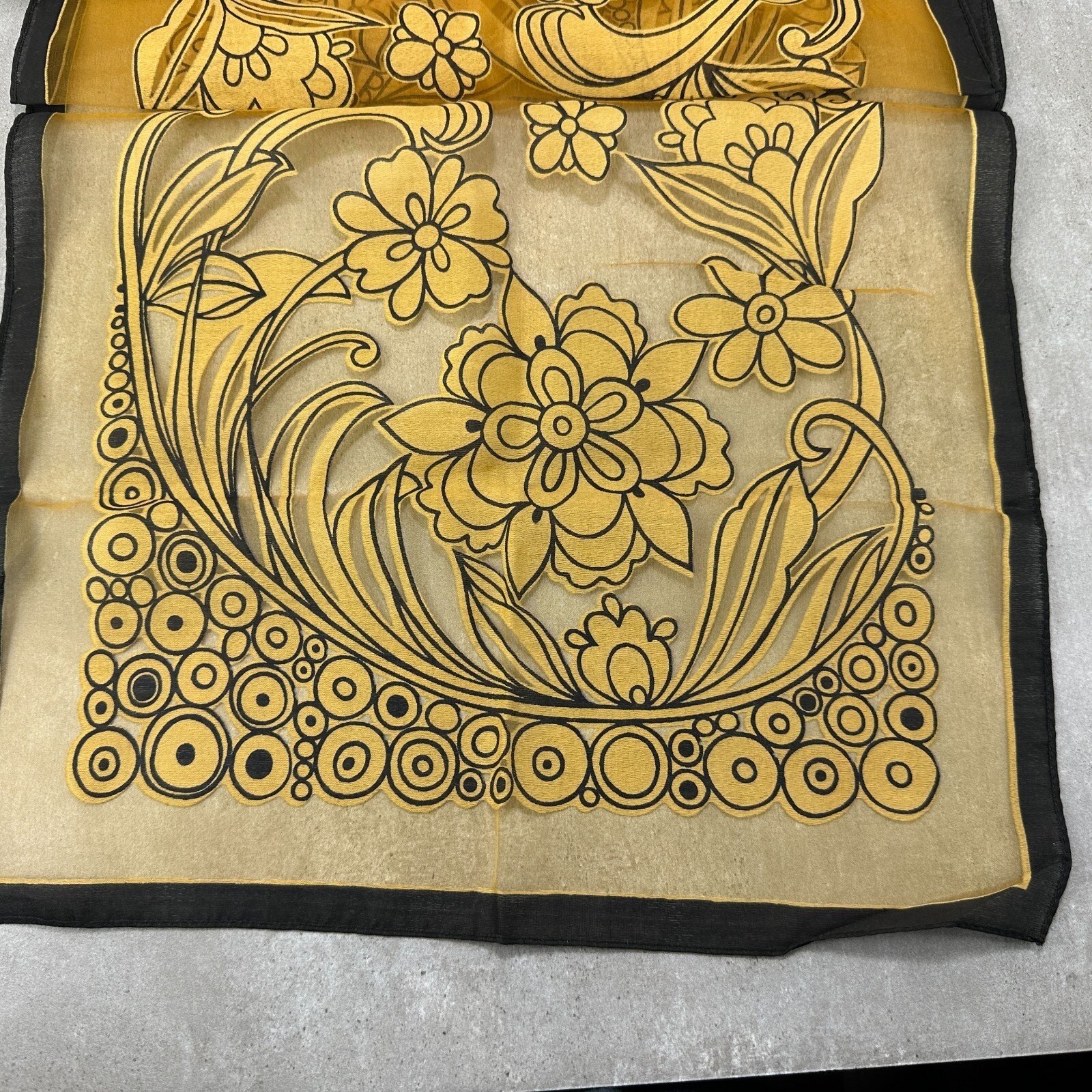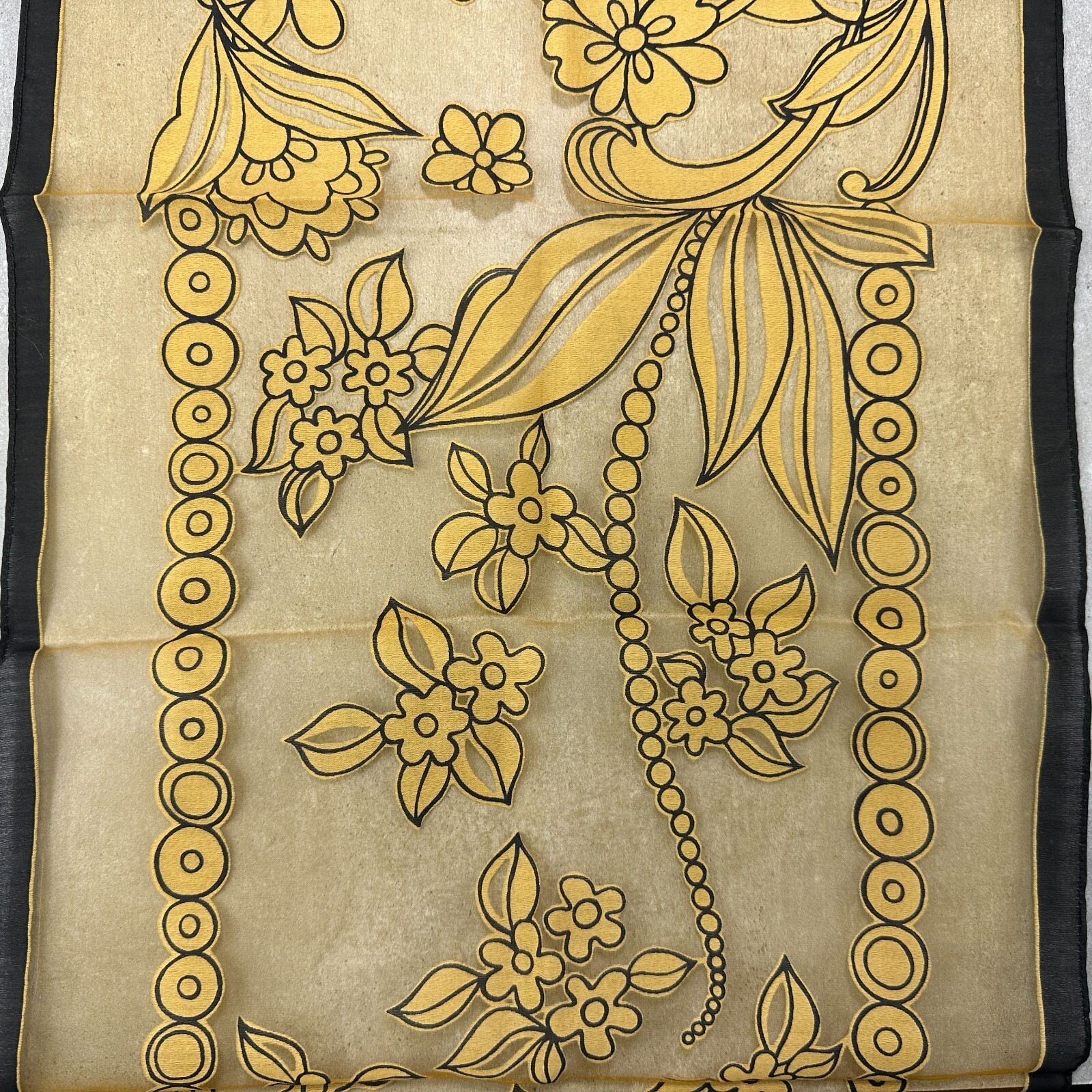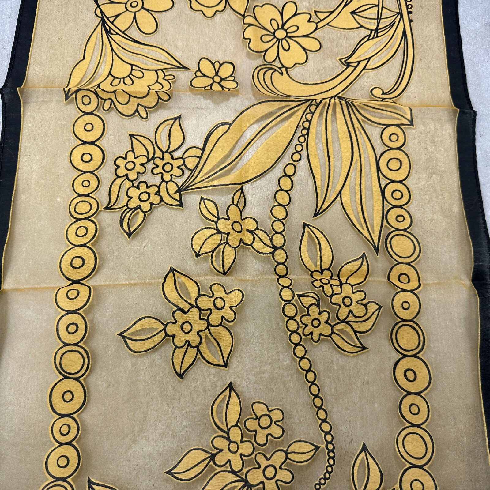 как выглядит Vintage Sheer Flower Scarf Japan Gold Black 100 Rayon Bold Floral 44" Lot Beige фото