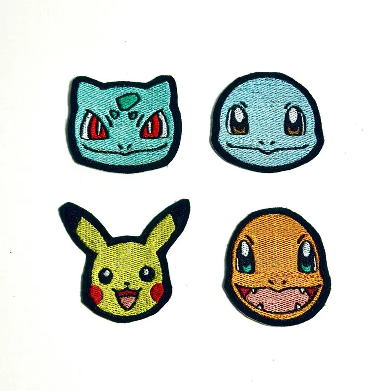 Pokemon Embroidered Patch Iron/Sew On Pikachu Bulbasaur Charmander Squirtle