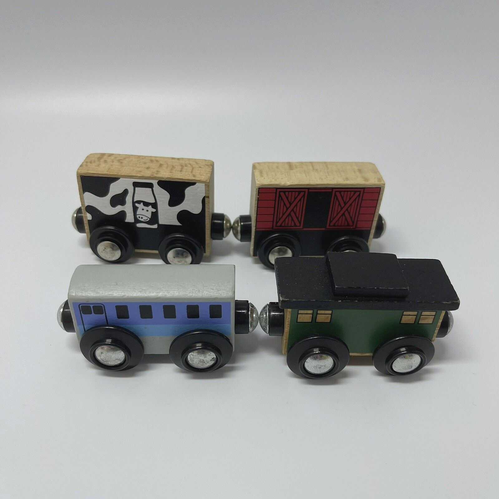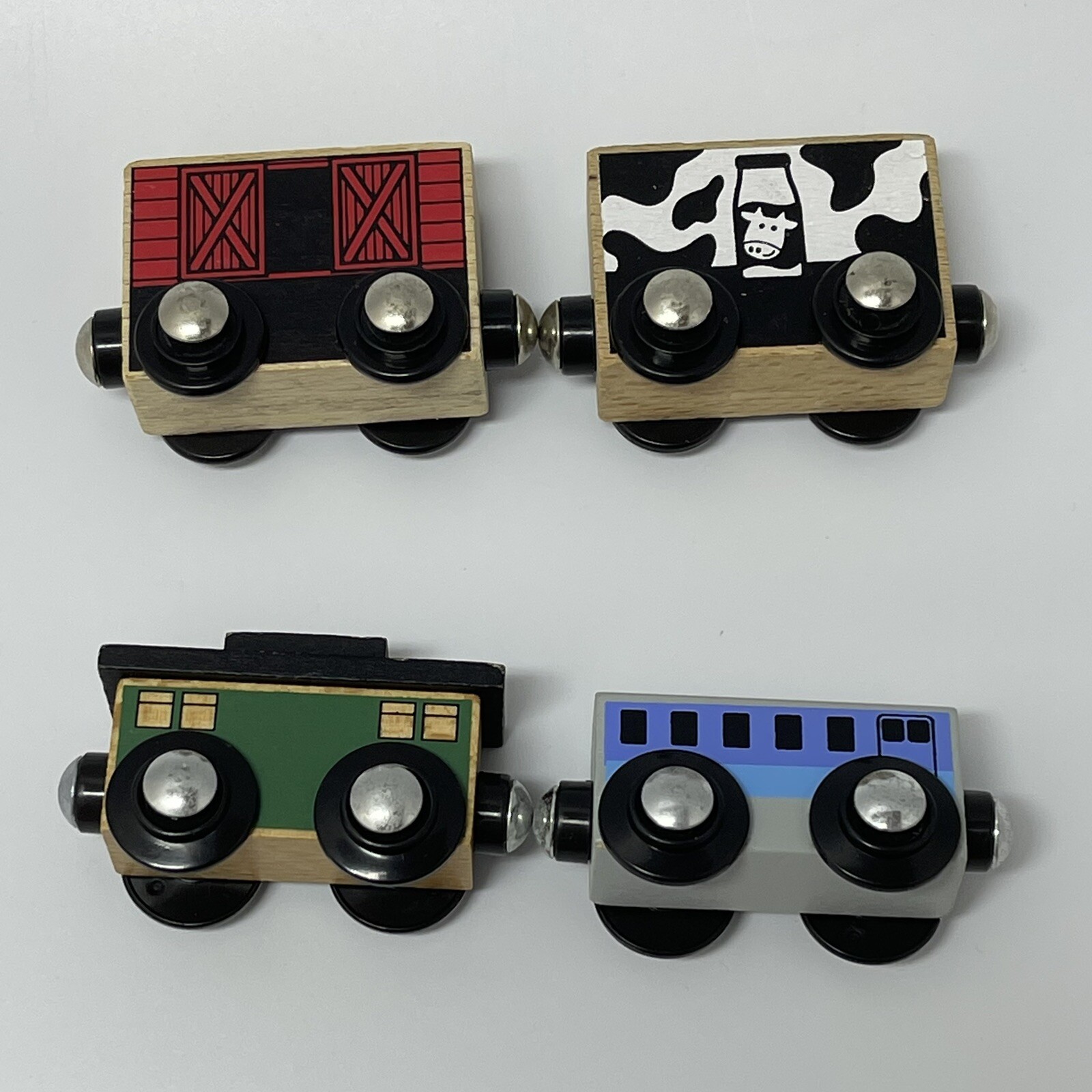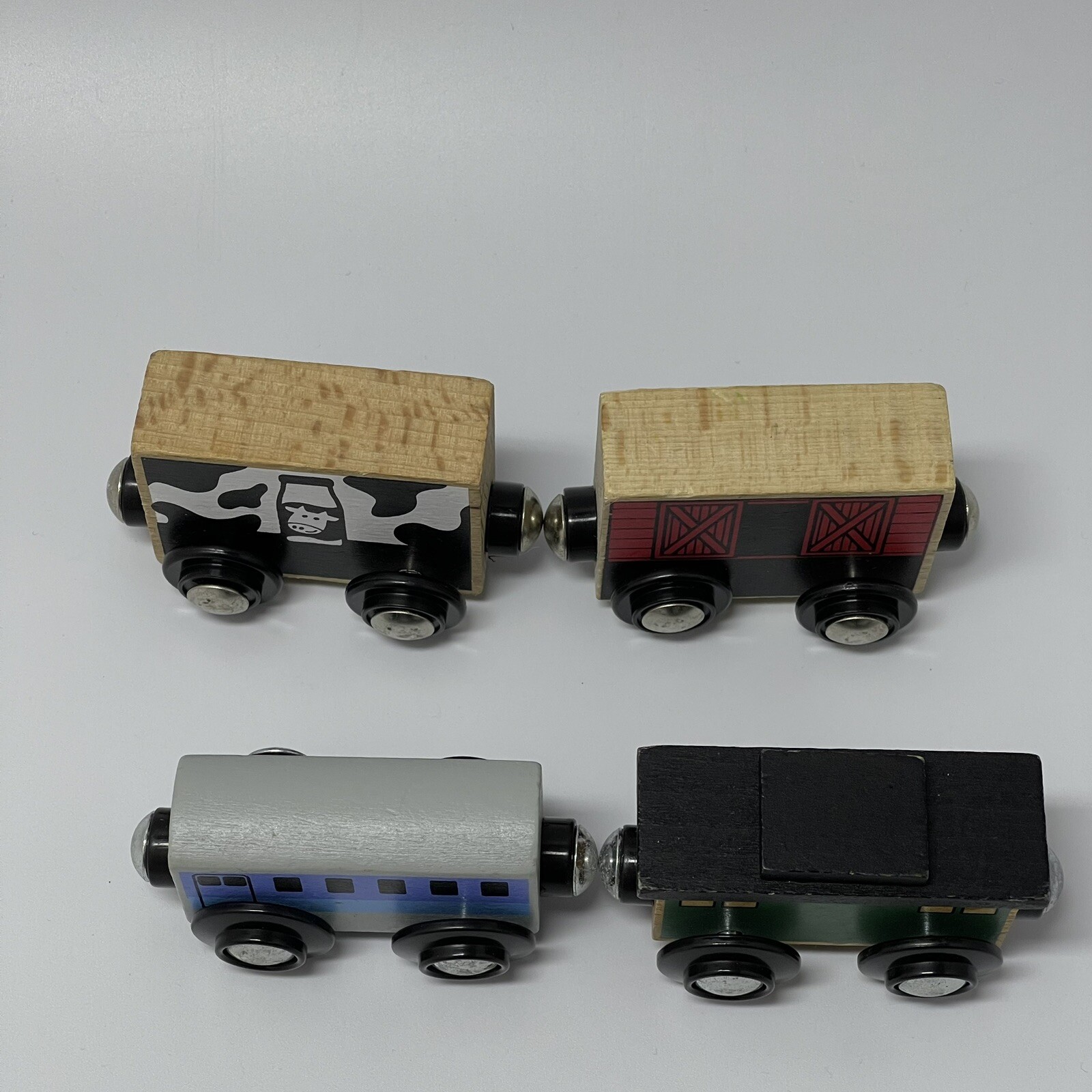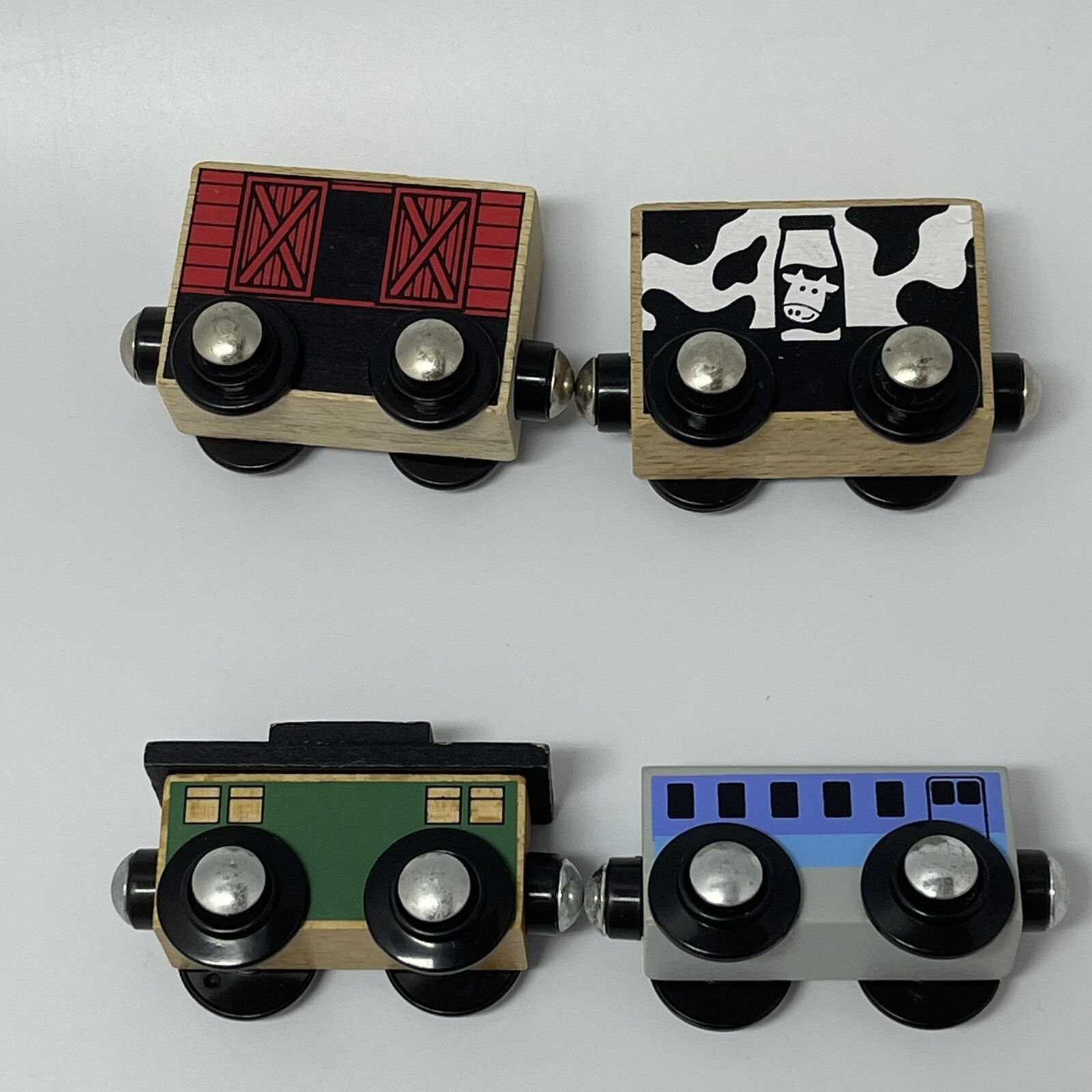 Toy Train Railway Lot of 4 Wood Wagons Wooden Magnetic Smalls