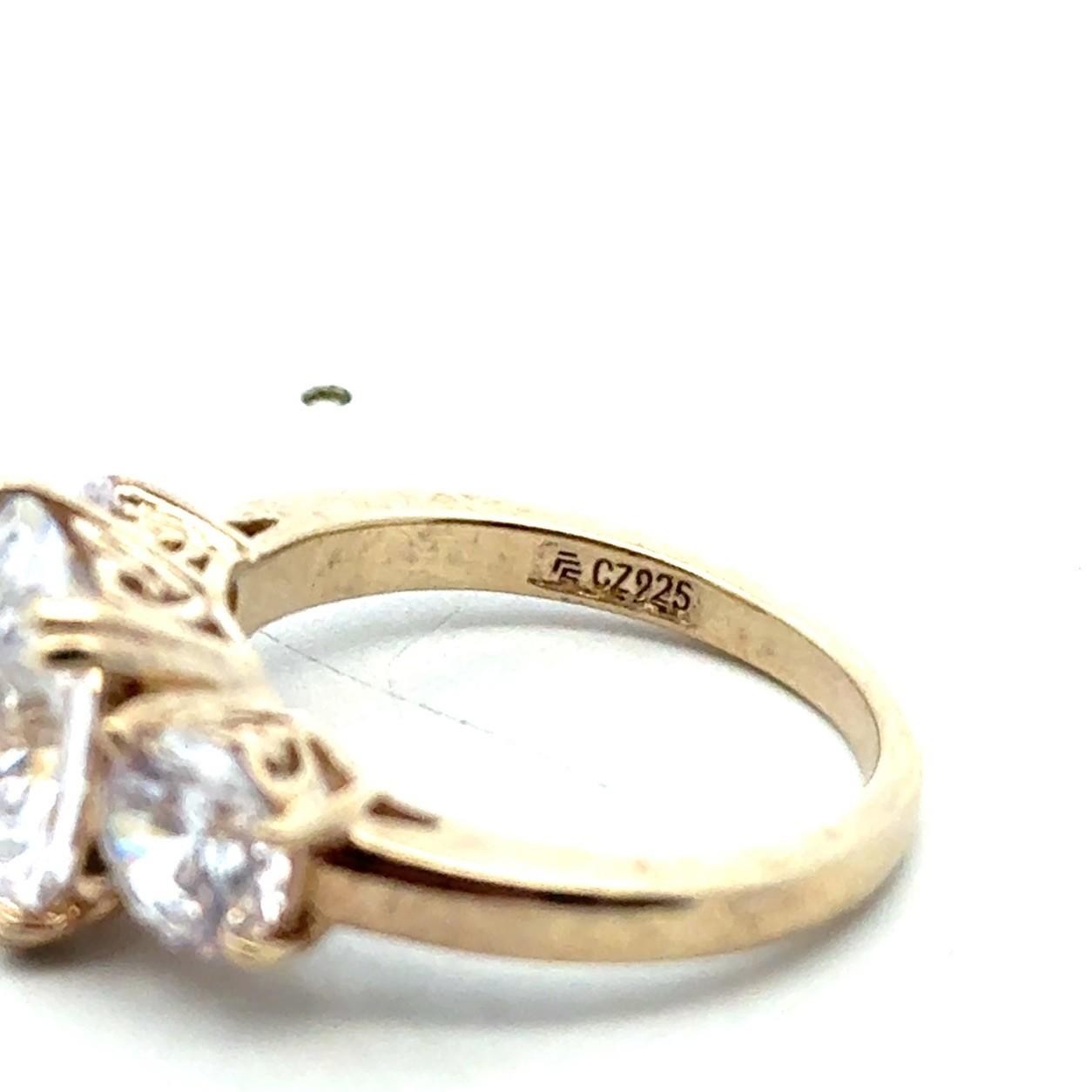как выглядит .925 Sterling Silver Gold Vermeil 3 Stone CZ Ring, Size - 7, 5.4g фото