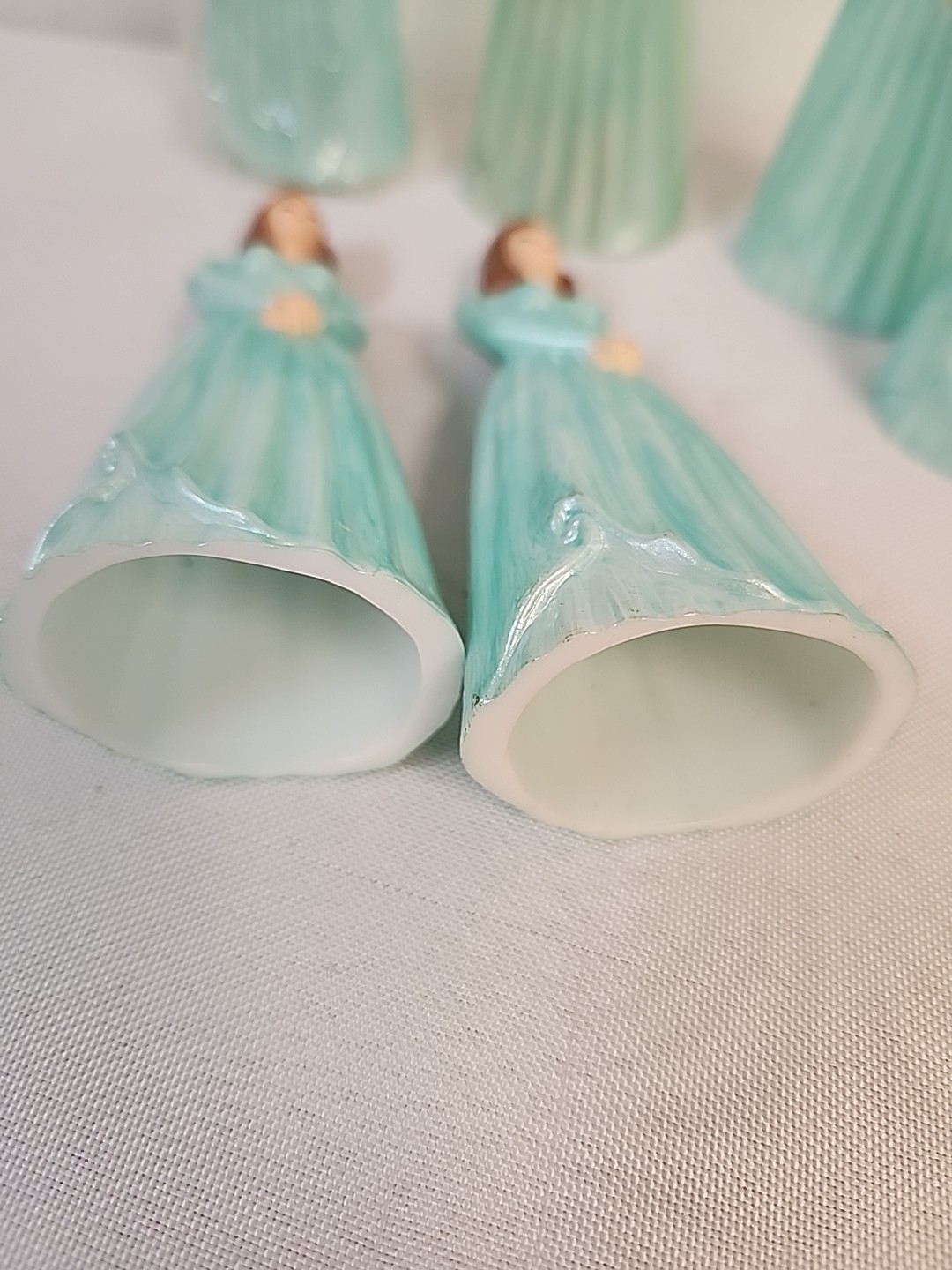 VTG BAKERY CRAFTS BRIDEMAIDS FIGURES 6 Cake Toppers Wedding AQUA Gowns