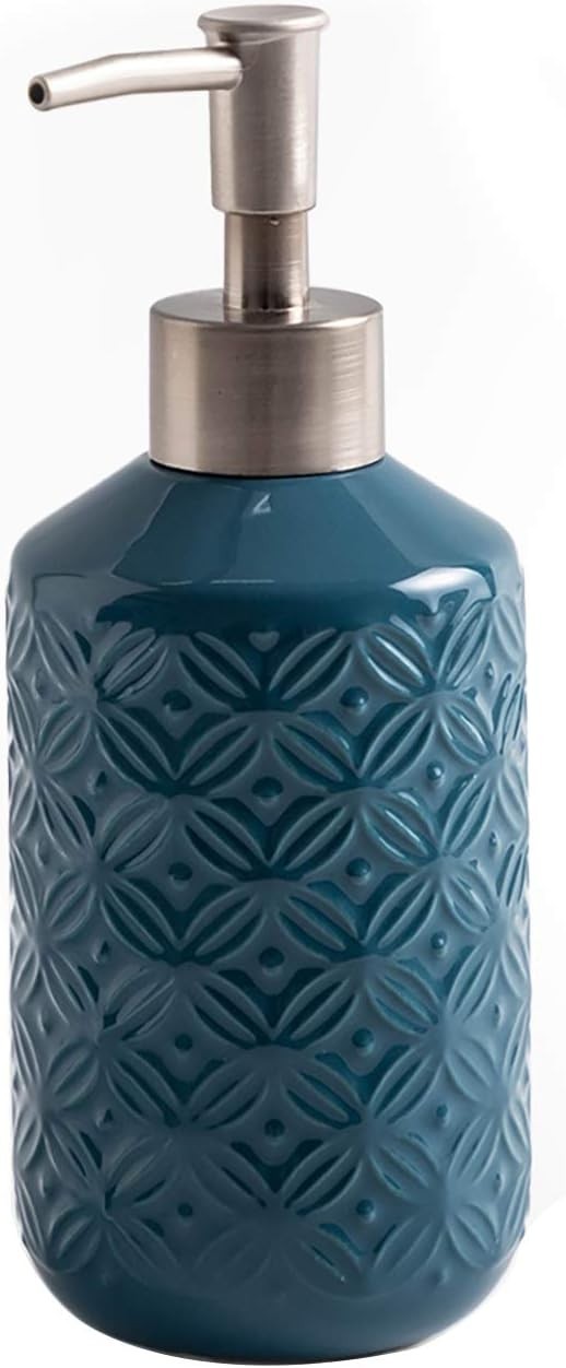 как выглядит Vintage Blue Ceramic 13.5oz Soap Dispenser  Elegant Refillable фото