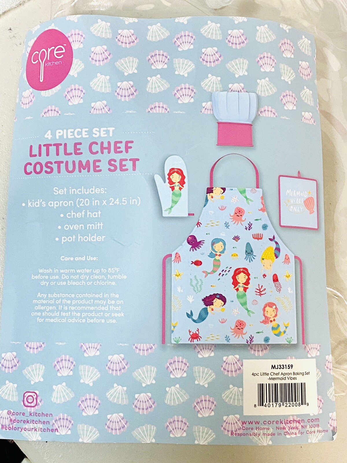 Mermaid Chef Play Costume Set Apron Hat Pot Holders Halloween