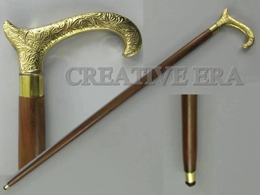 36'' Solid Brass Designer Cane Wooden Walking Stick Vintage Nautical Canes