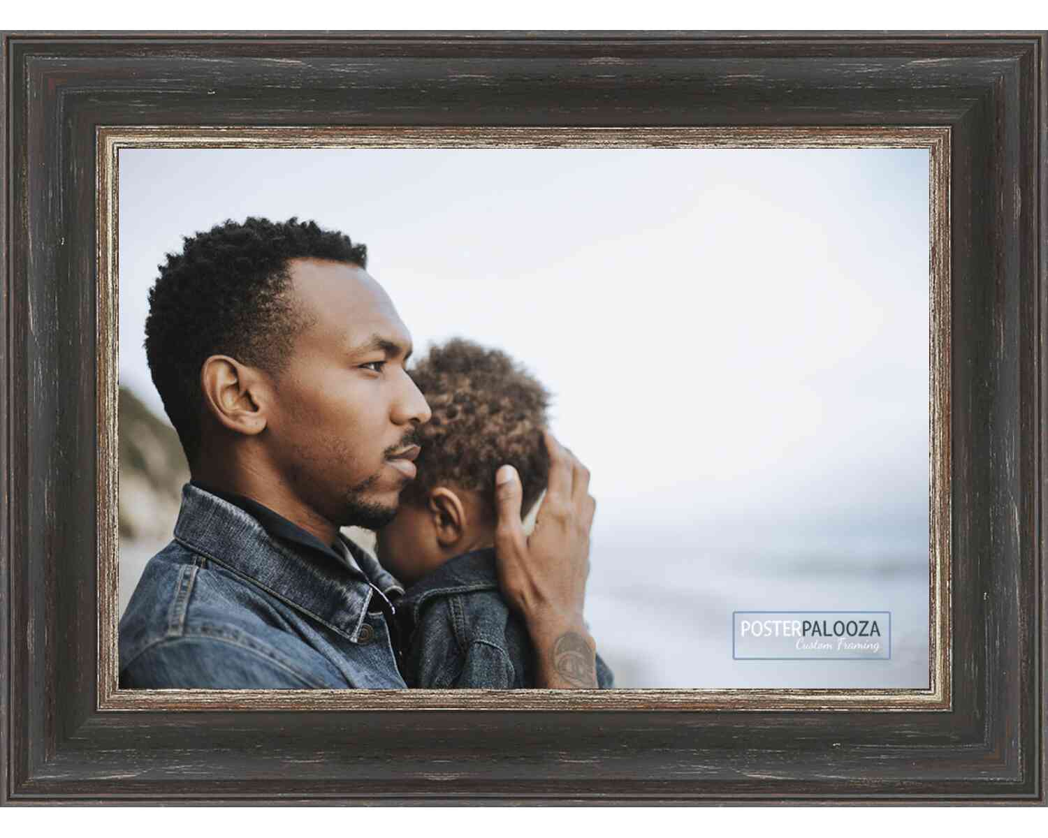 Photo Size Weathered Black Picture Frame - UV Acrylic, Backing, Hanging Hardware