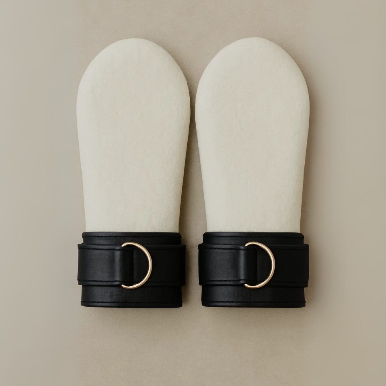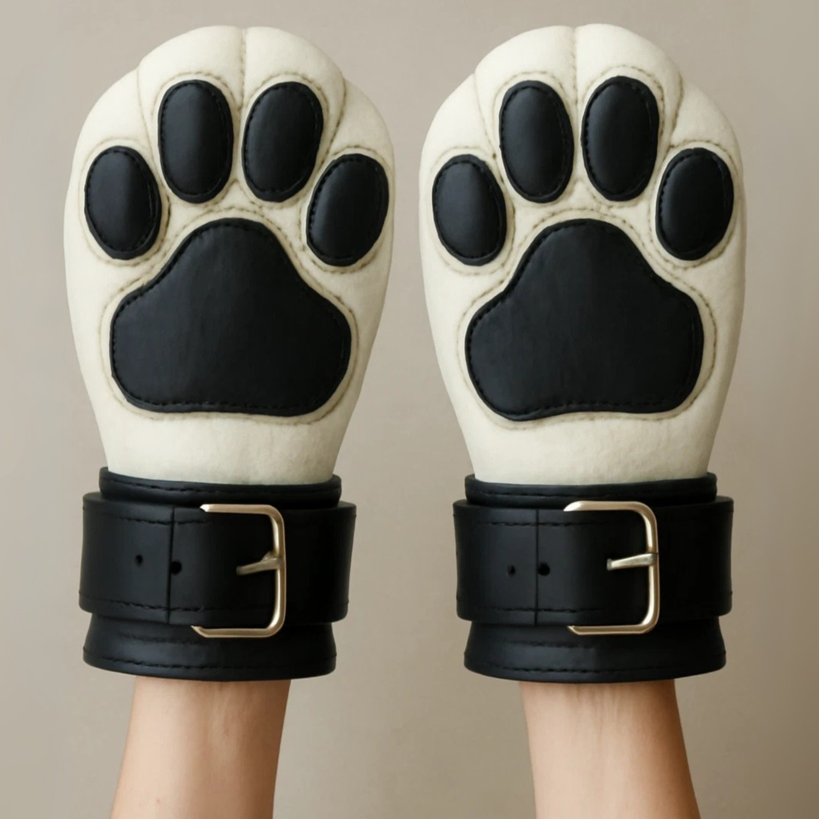 Real Leather BDSM Bondage Mitts Padded Fist Mitts Gay Puppy Play Gloves 2 pieces