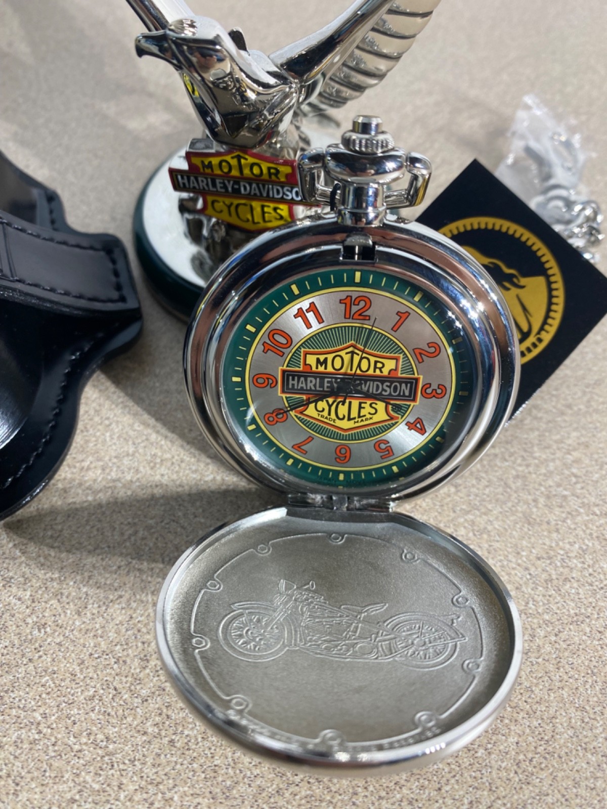 как выглядит Harley Davidson Collectable Pocket Watch, Stand Leather Case Franklin Mint фото