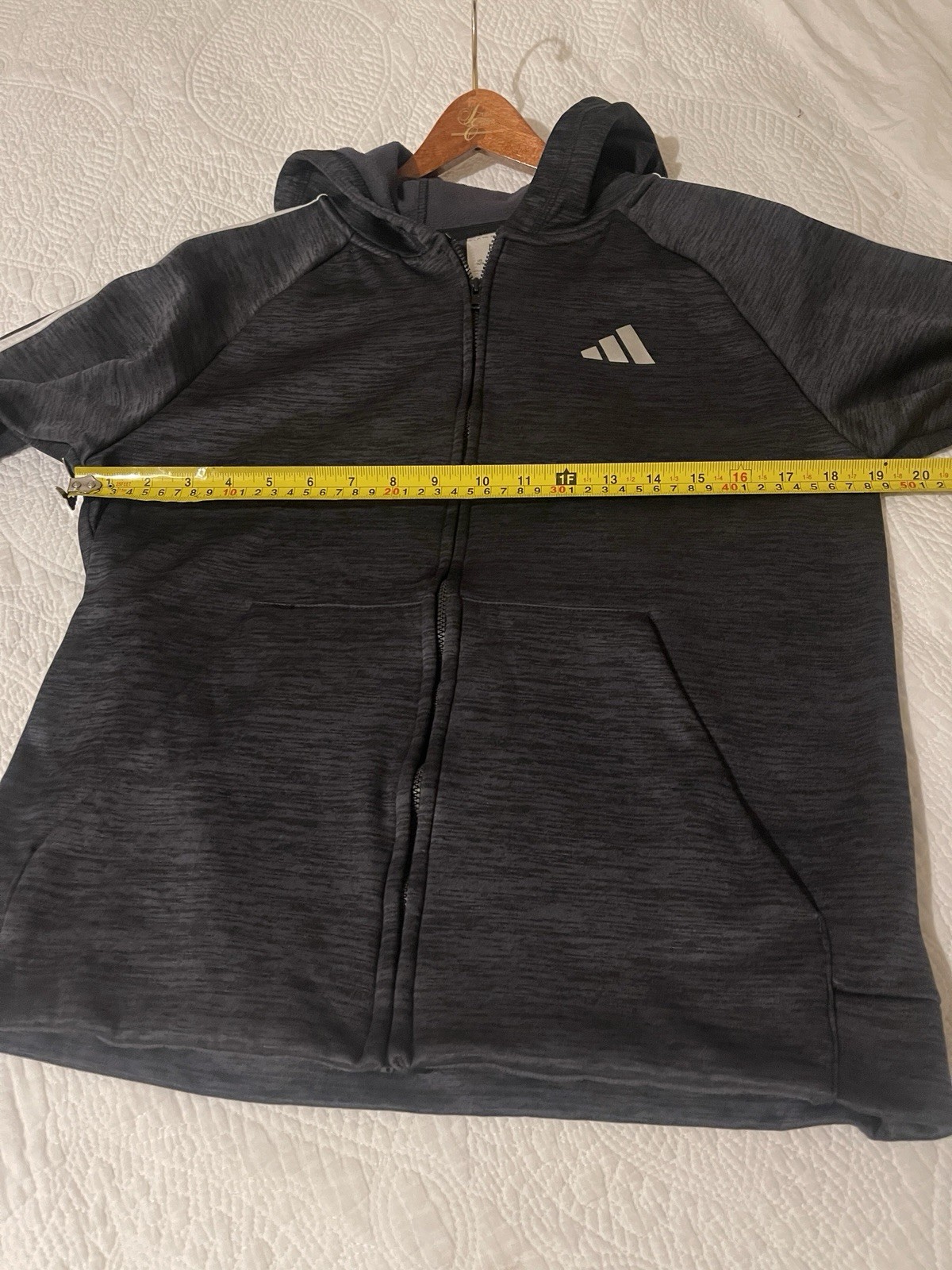 как выглядит Adidas Youth Boys Large 14/16 Full Zip Hoodie Black Gray 3-Stripes Logo фото