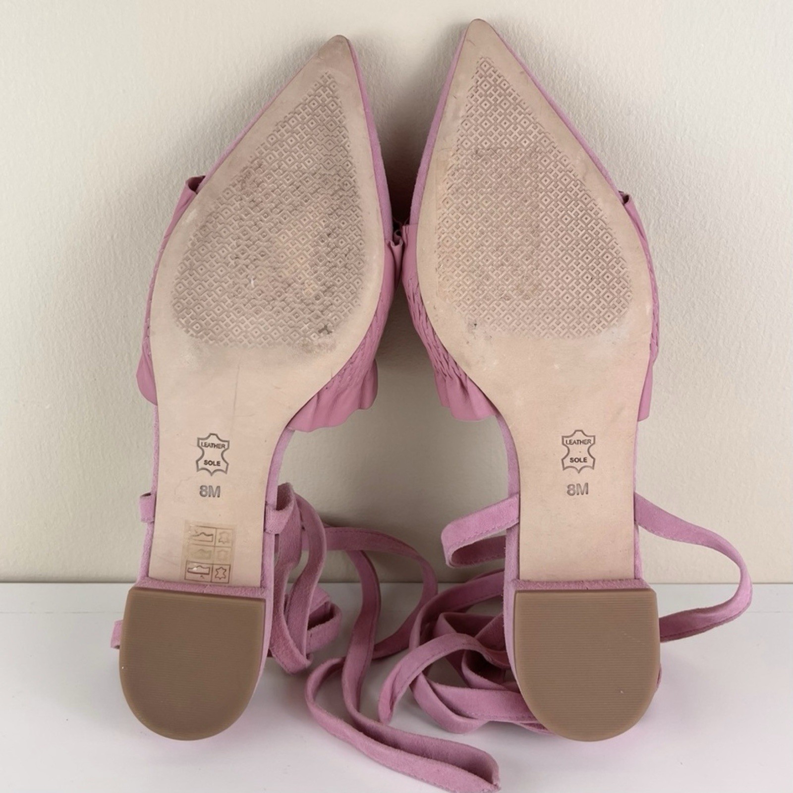 как выглядит 328 TORY BURCH PINK SUEDE ANKLE WRAP MULES 8 фото