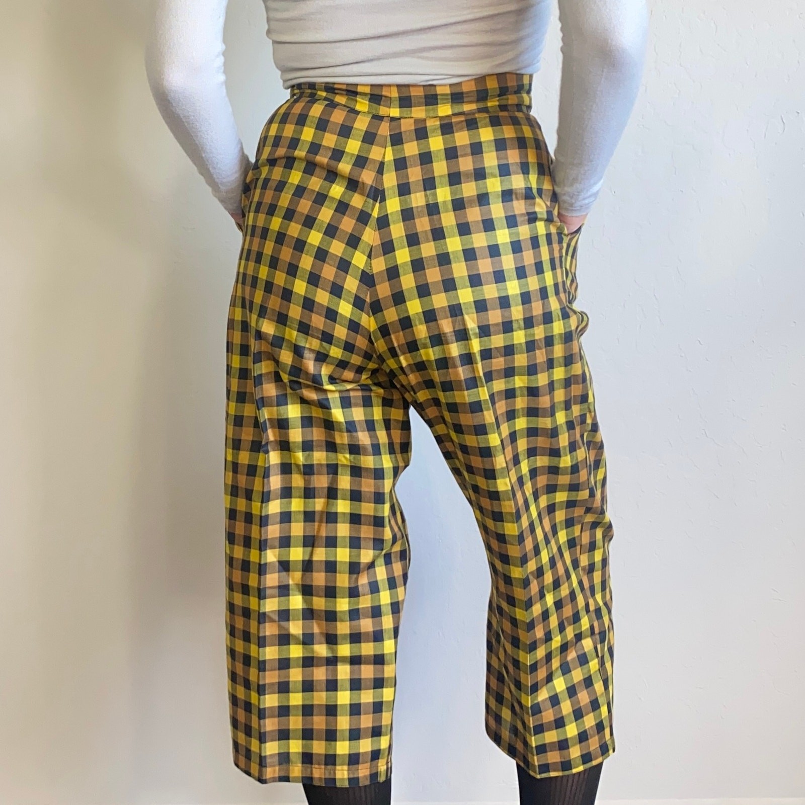 как выглядит Vintage Donna Azzurra Autumn Buffalo Plaid High Waist Culottes Wide Leg Pants фото