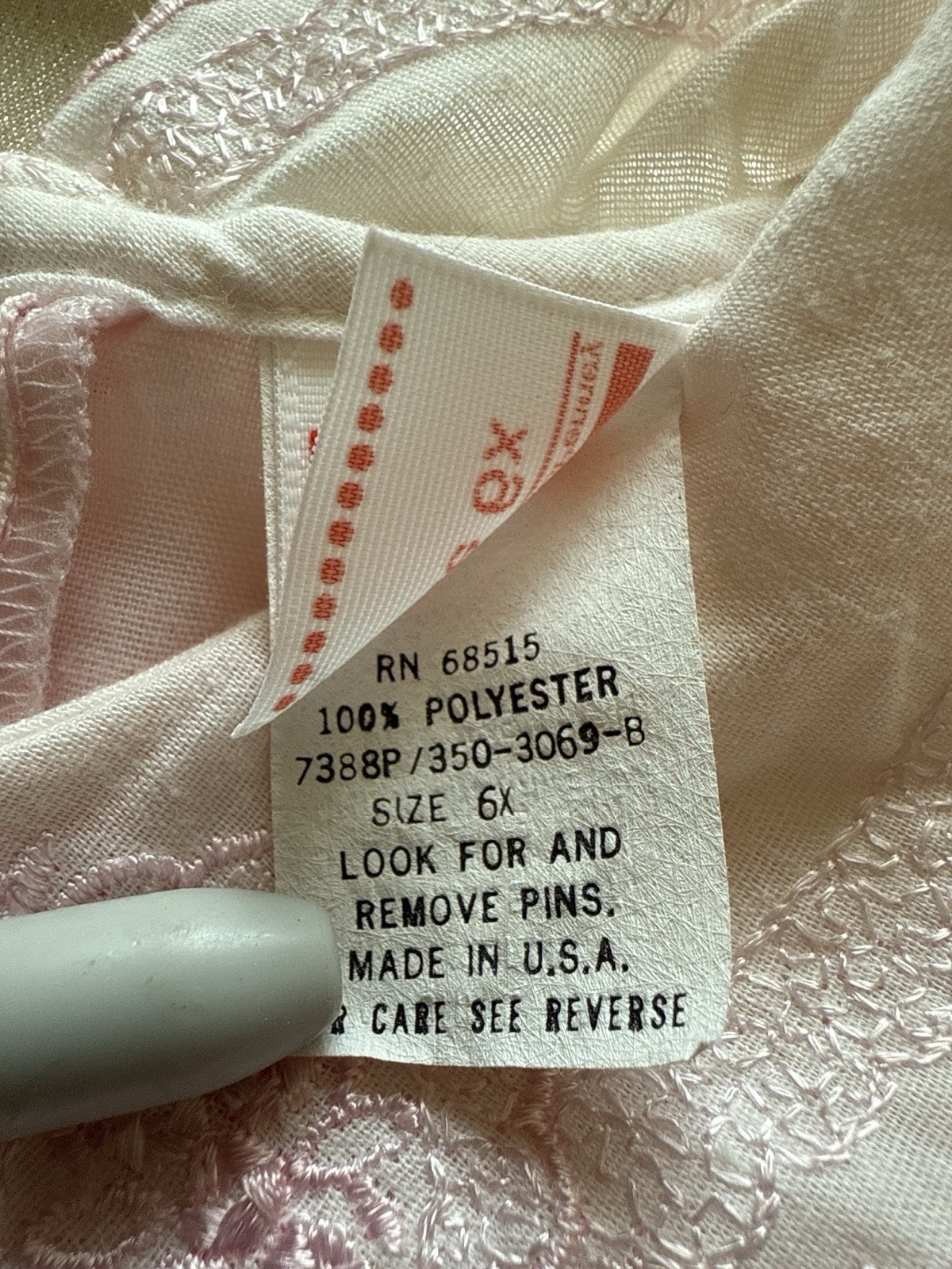 VTG JCPenney Girls Dress 6X Pink Lace Collar Puff Sleeve Drop Waist Made USA 80s