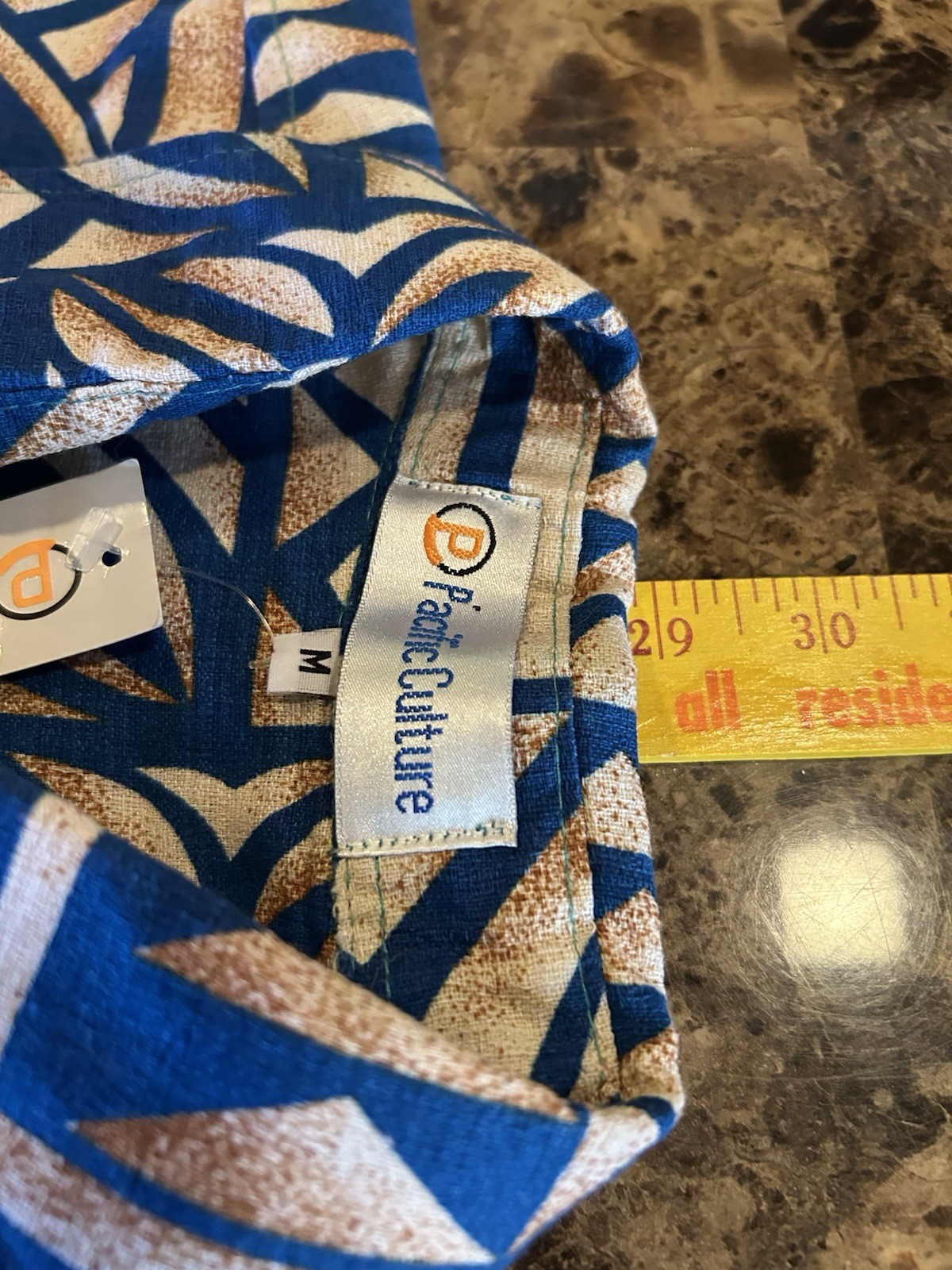Pacific Culture Hawaiian Shirt Medium Slim Fit NWT Blue Casual Vintage Freeship