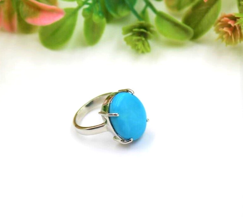 Turquoise Oval Gemstone 925 Sterling silver Wedding Gift Ring promise gift ring