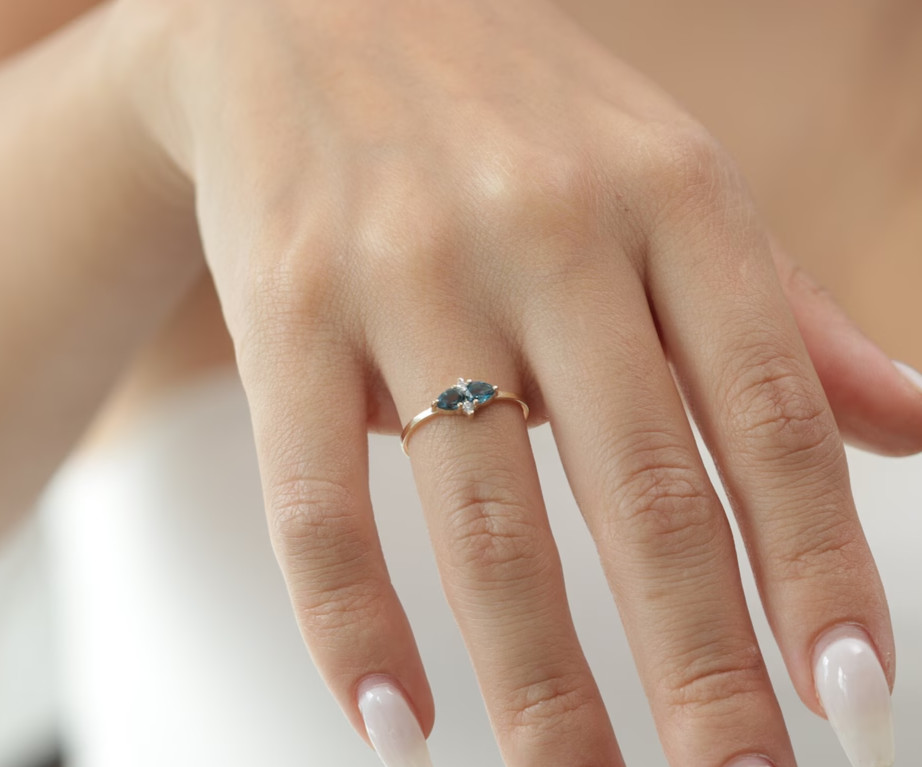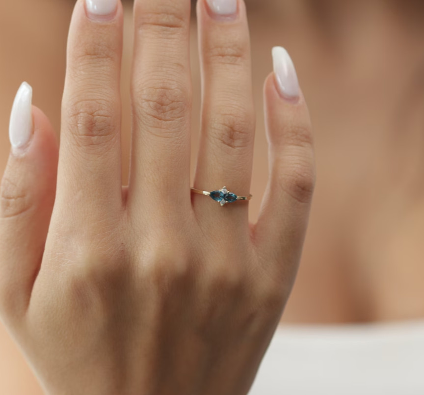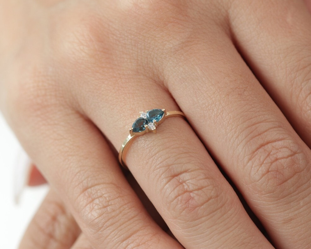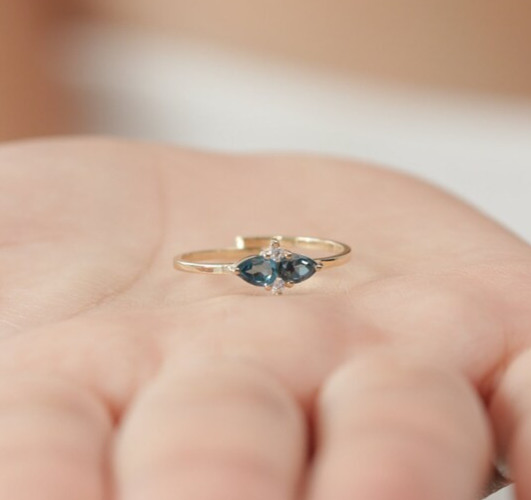 как выглядит Blue Topaz Wedding Ring Pear Cut Gemstone Yellow Gold Plated Ring Silver Ring фото