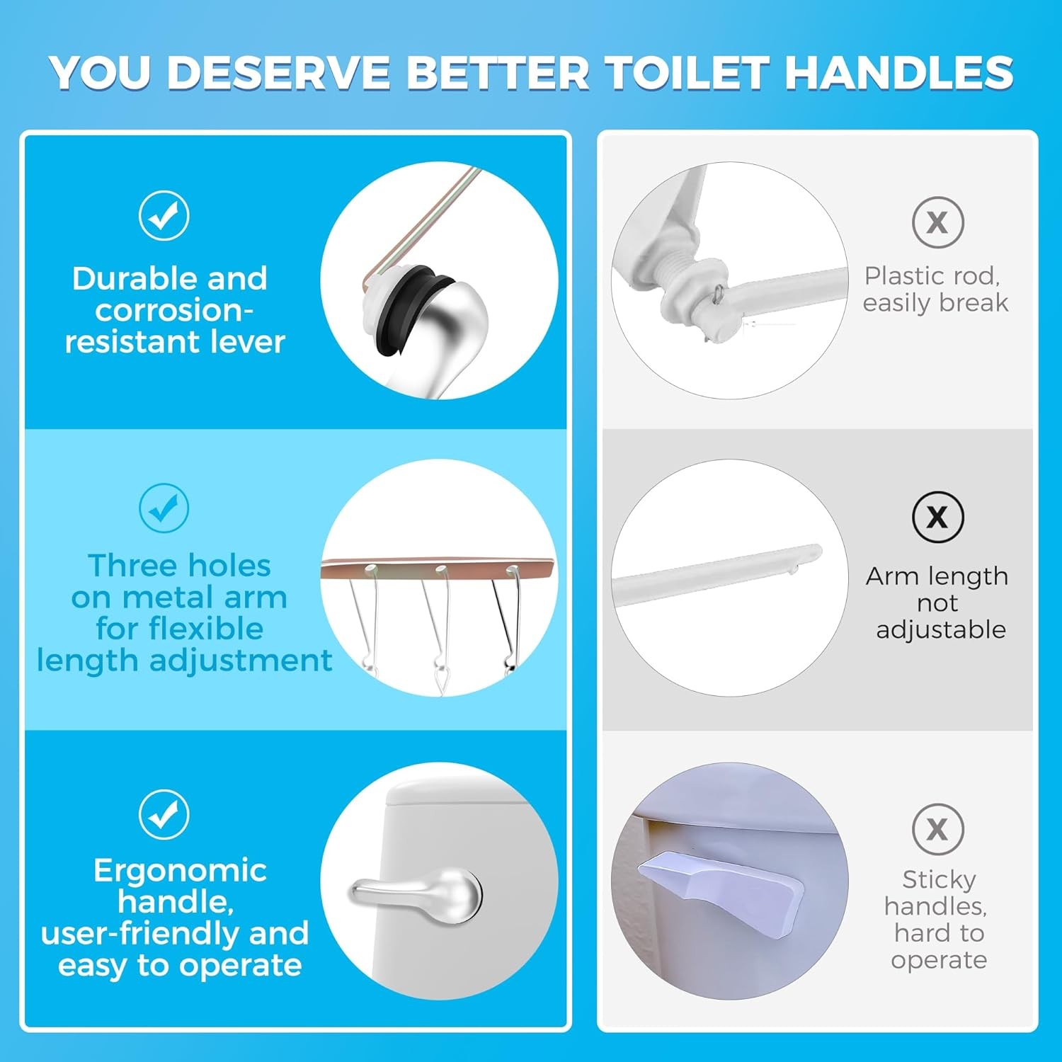 • 2 Pack Toilet Handle Replacement Kit, Front Mount Flush Lever Chrome
