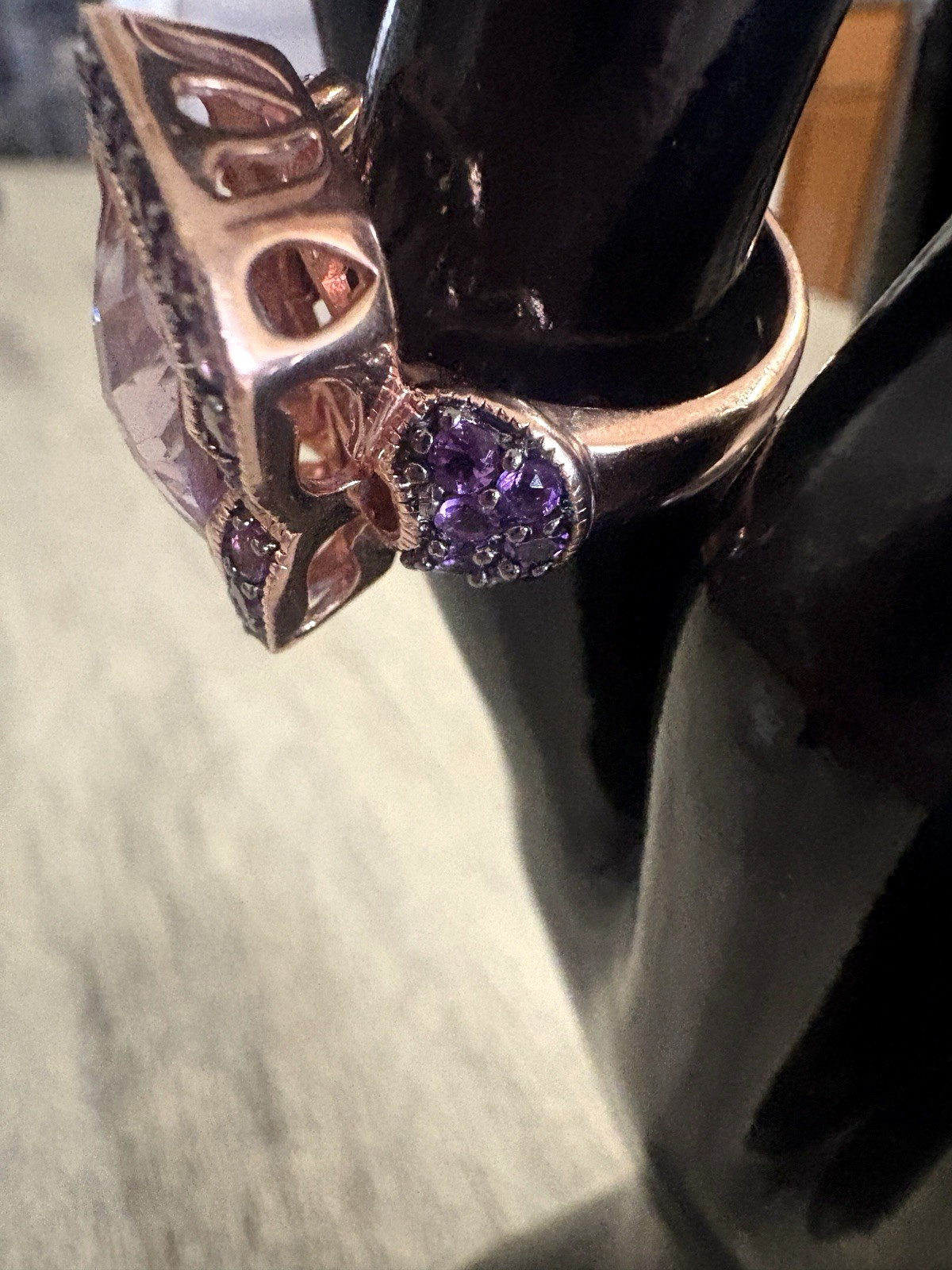 как выглядит Faceted Square Amethyst w Amethyst HALO RG/Sterling Silver Cocktail Ring SZ 8 фото