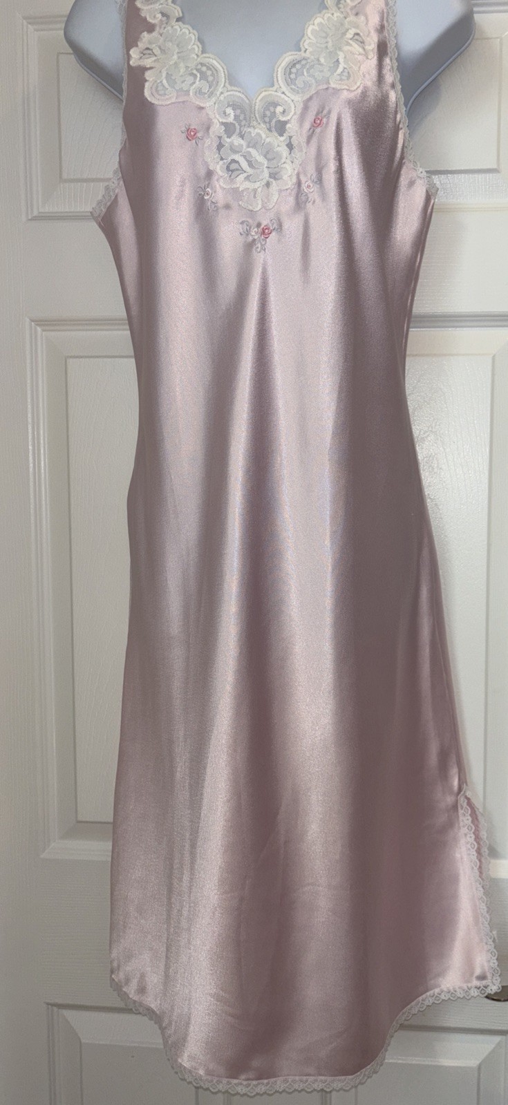 как выглядит Vintage Barbizon Pink Lace Nightgown Slip Dress Embroidered Nylon Satin Lovely фото