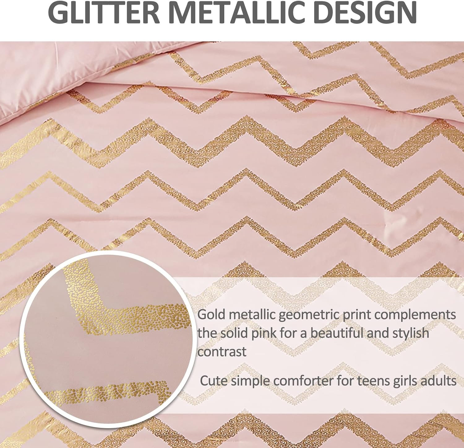Pink Comforter Set Queen/Full Size Metallic Blush and Rose Gold Bed Comforter 4