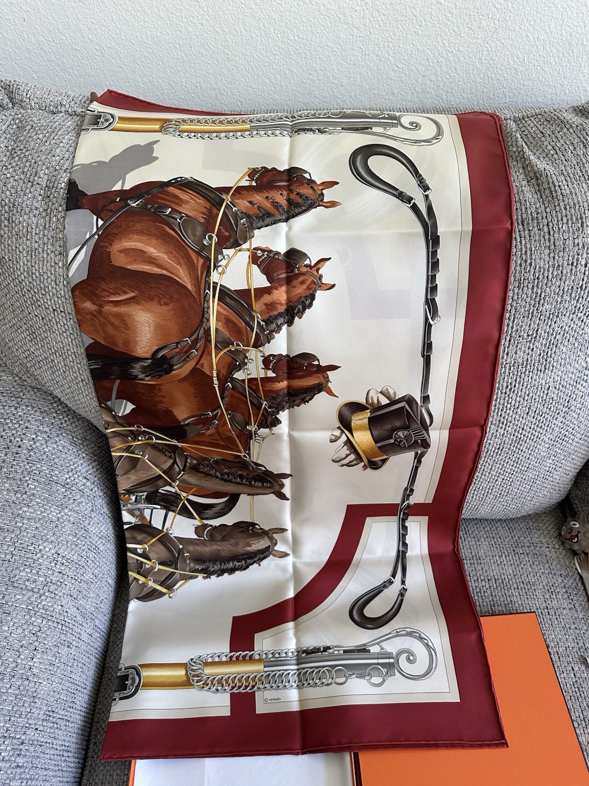 как выглядит NEW HERMES Attelage en Arbalete Forever 100 SILK Scarf 90 фото