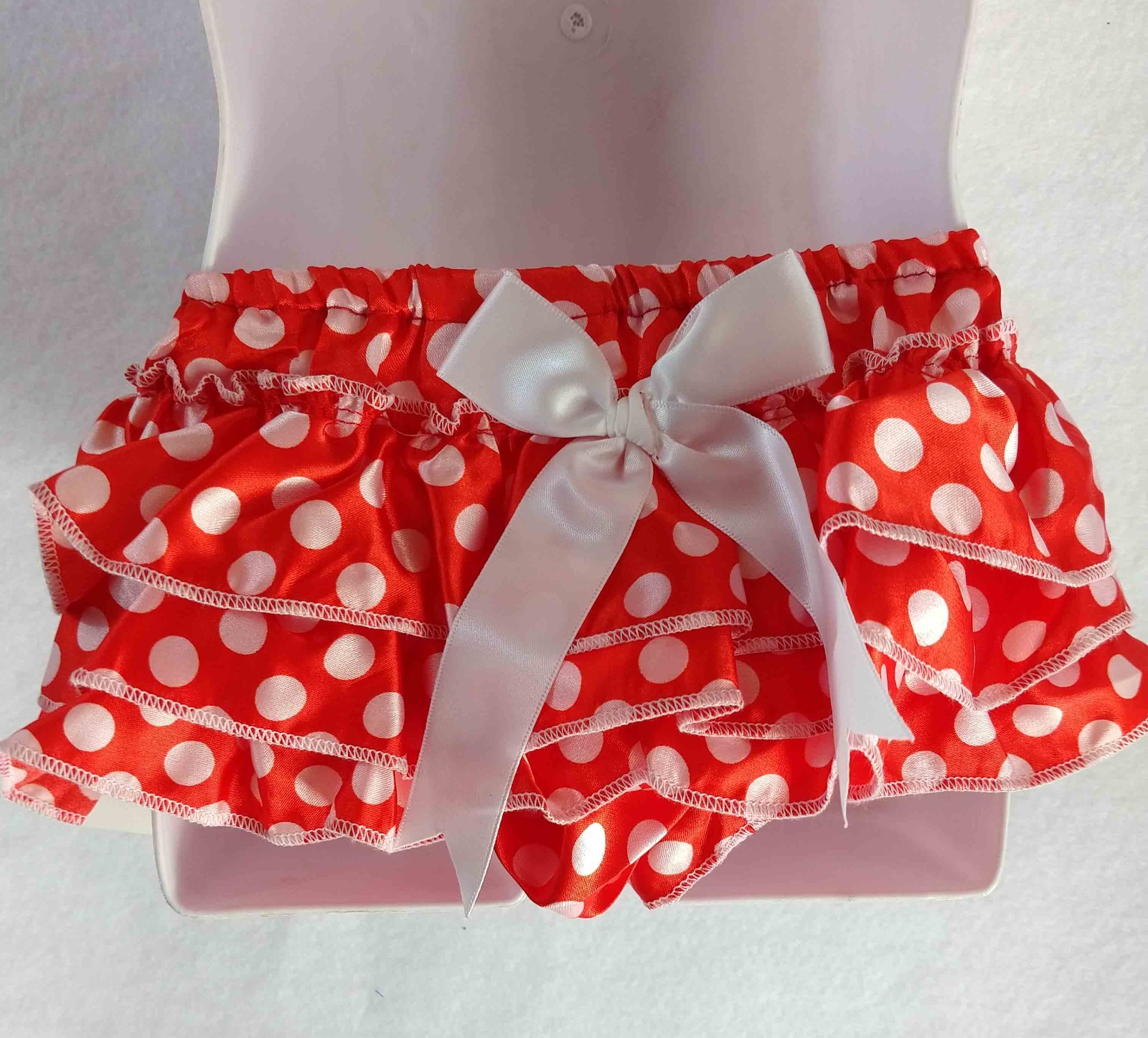 New Infant bloomers Red w/ white dots, Ruffel back with white bow. Med or Lg