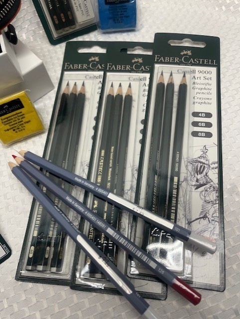 FABER CASTELL 9000 GRAPHITE ARTIST DRAWING PENCILS, Case, kneadable Eraser K-06
