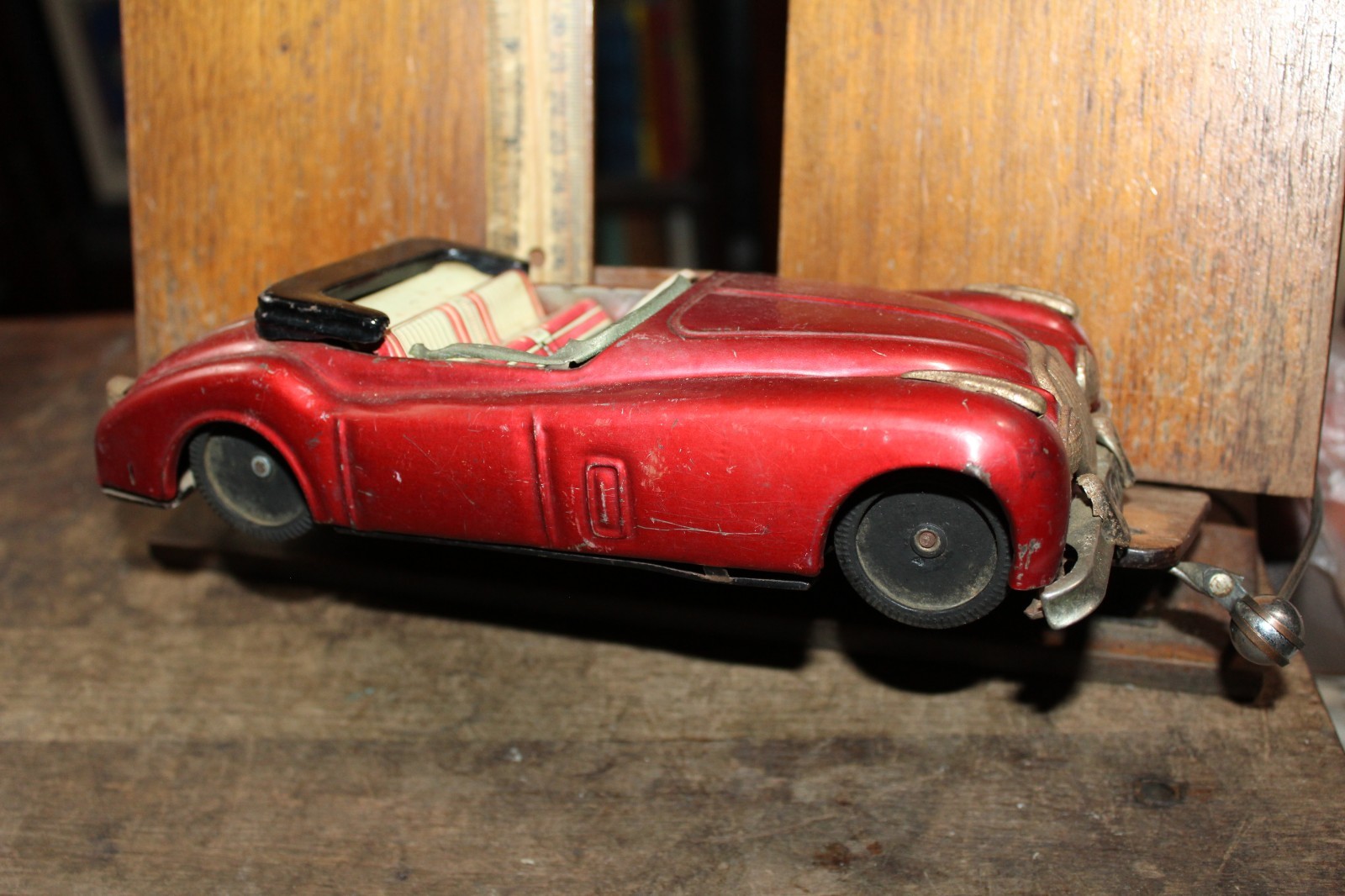 Vintage Japan BANDAI Tin Litho Jaguar 9 Friction Drive Convertible Coupe Car