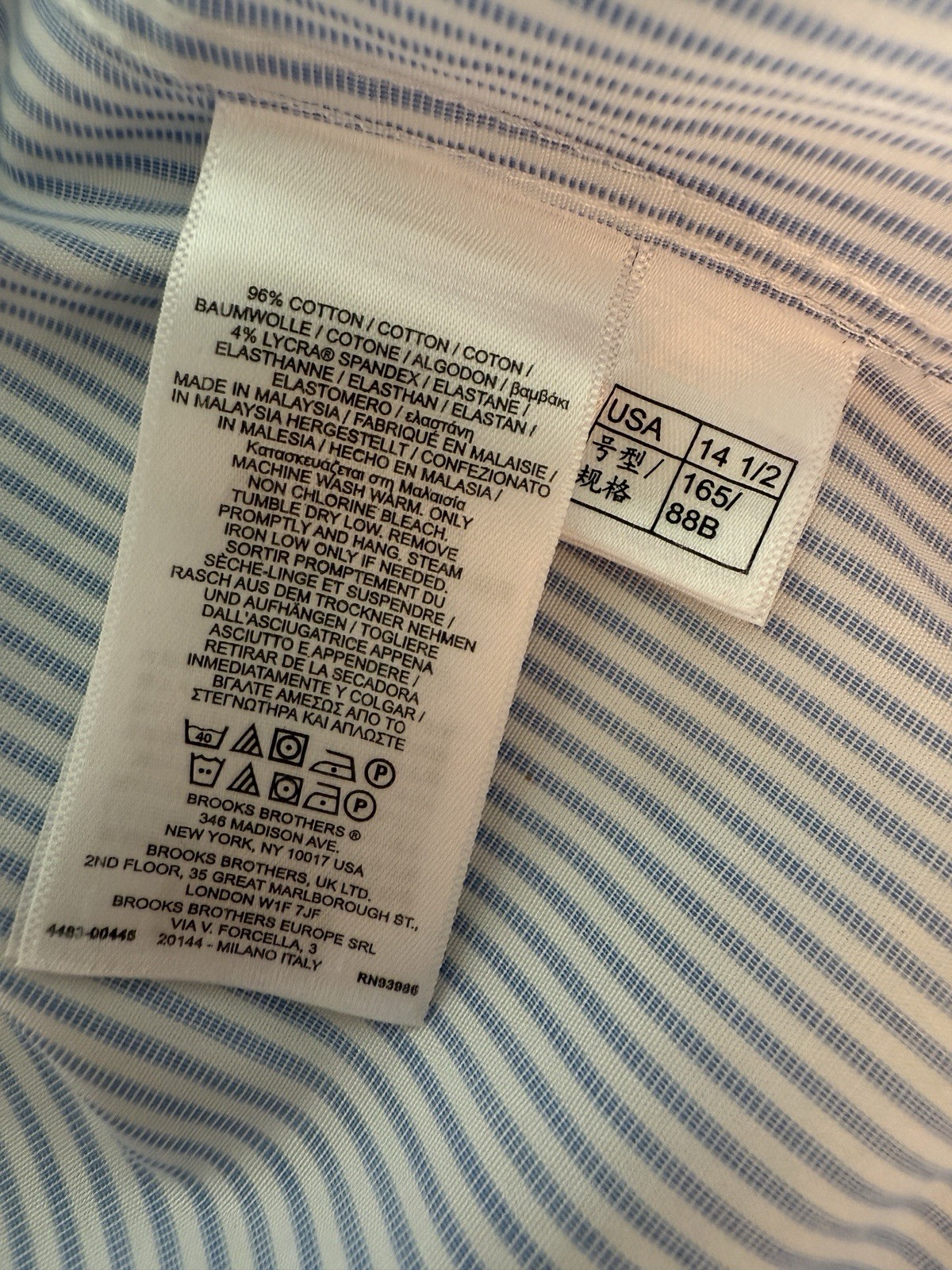 как выглядит Brooks Brothers REGENT 14 1/2-33 Light Blue Striped Non Iron Button Up фото