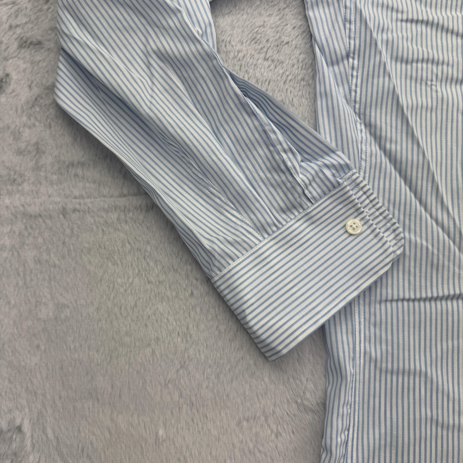 VINTAGE Christian Dior Shirt Mens 15 32-33 Blue Stripe Button Down Made USA 90s